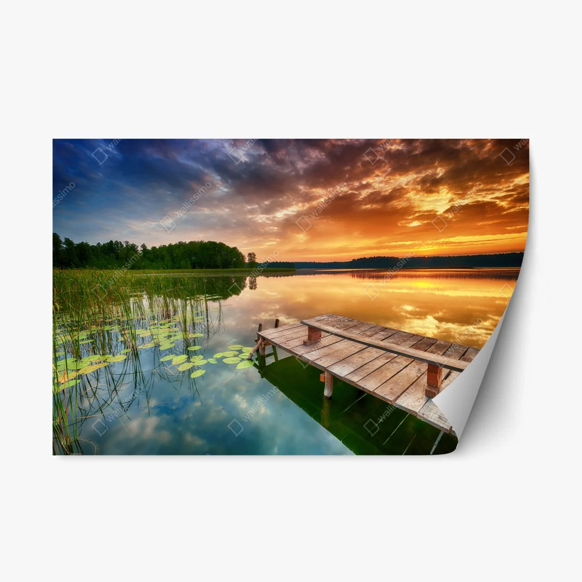 Naklejka repozycjonowalna Złoty wschód słońca nad spokojnym jeziorem