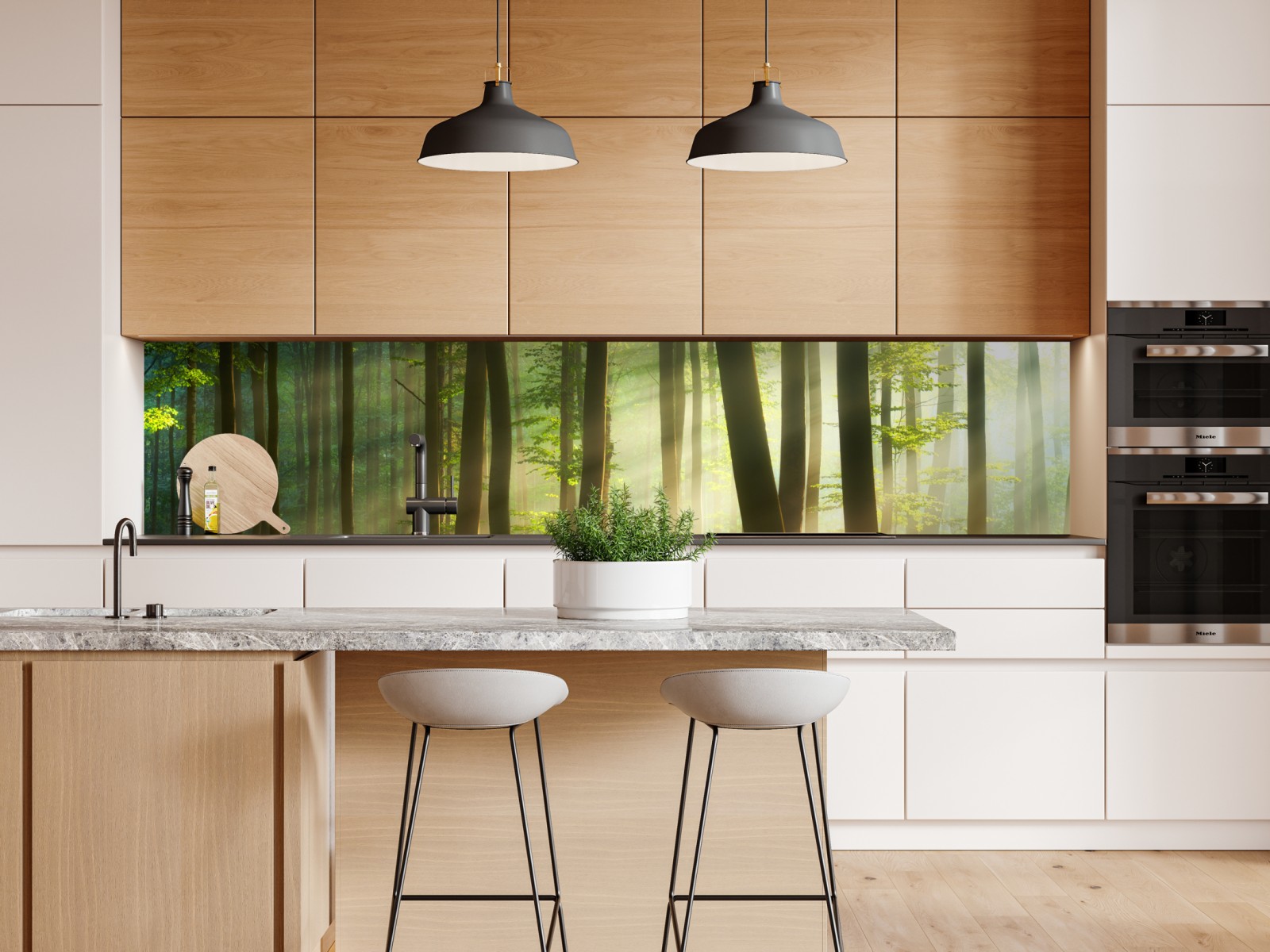 Naklejka repozycjonowalna Poranny las skąpany w słońcu