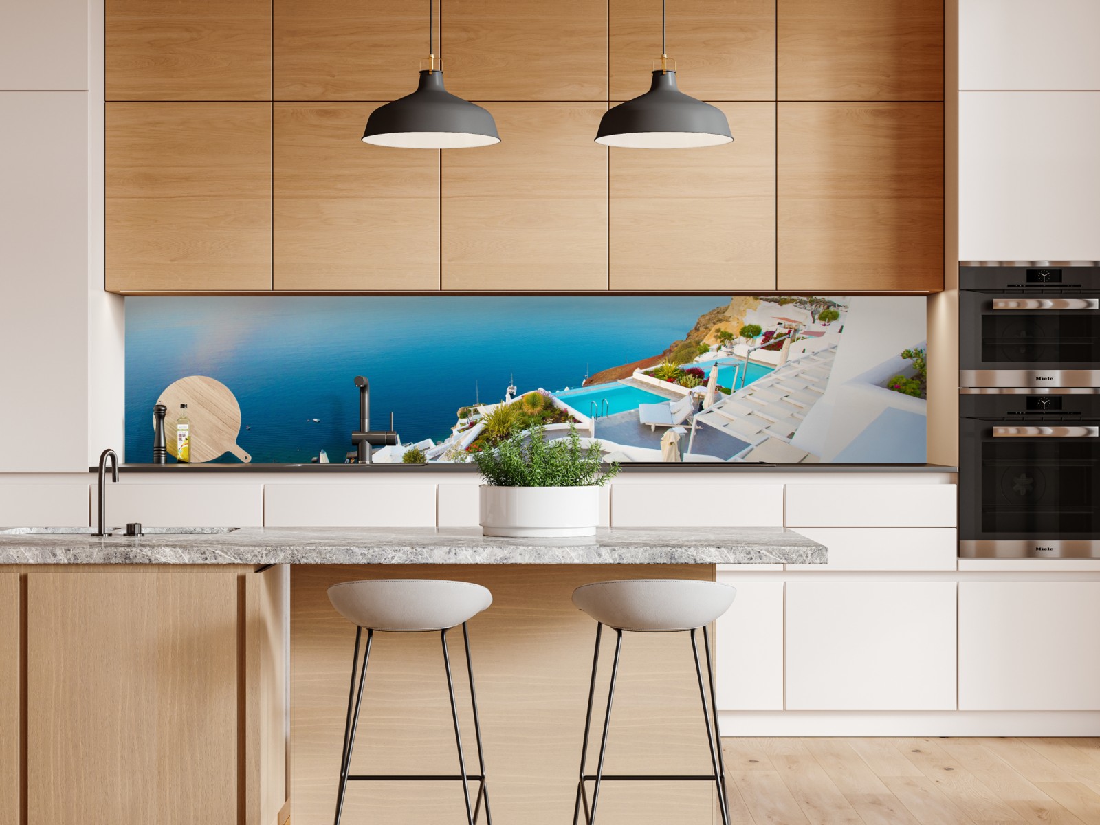 Naklejka repozycjonowalna Santorini widok na morze z tarasu