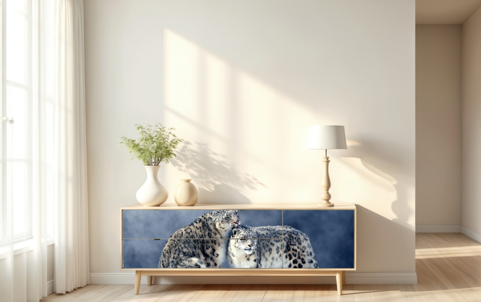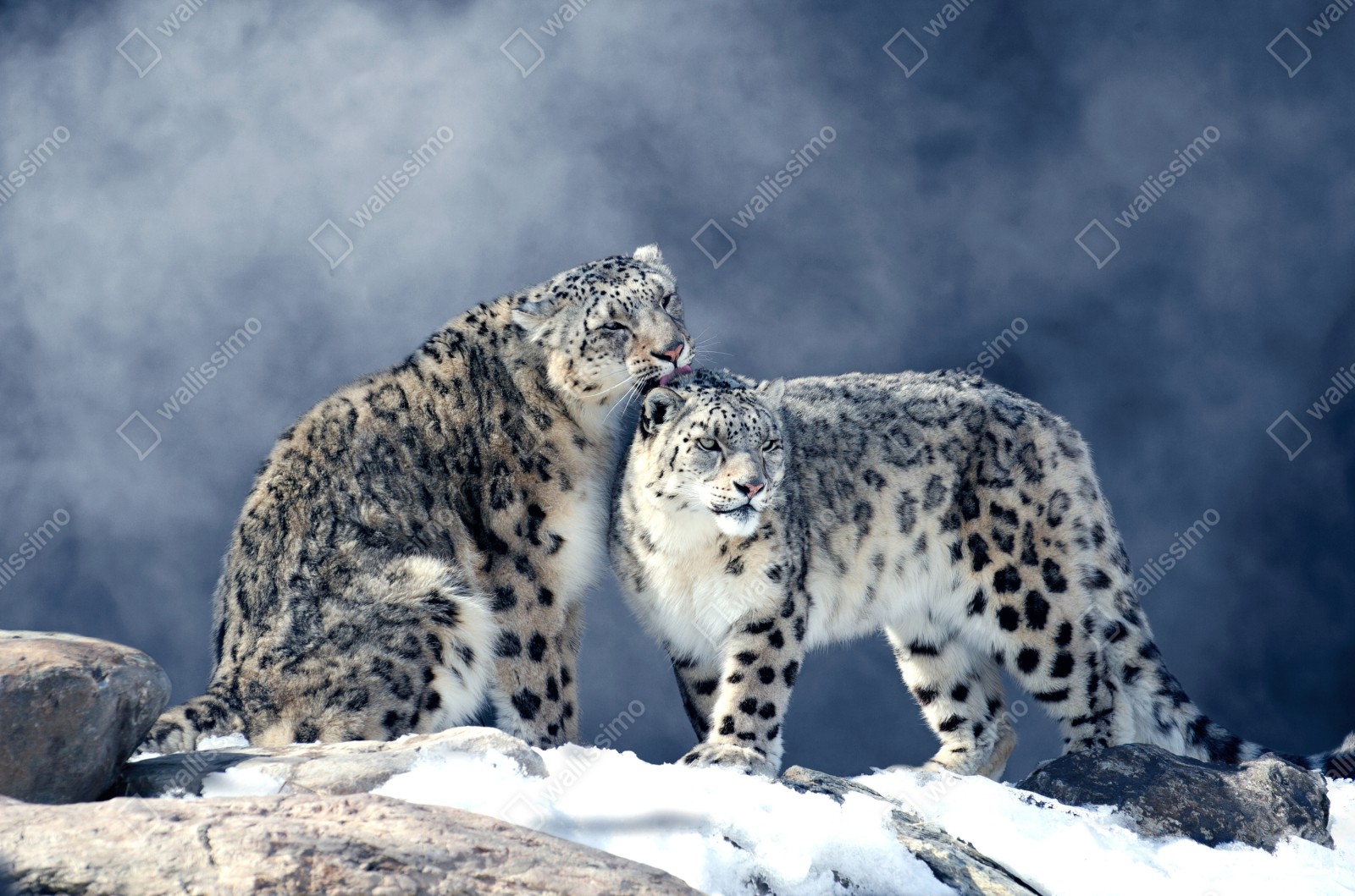 Naklejka repozycjonowalna Majestatyczne pantery śnieżne w zimie