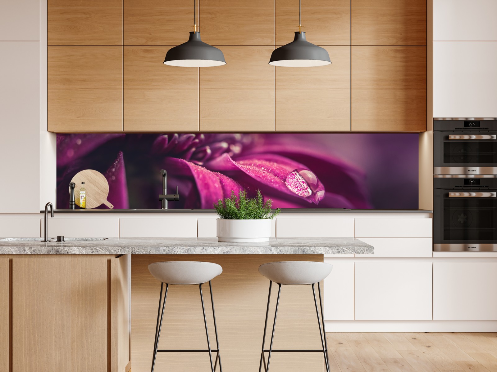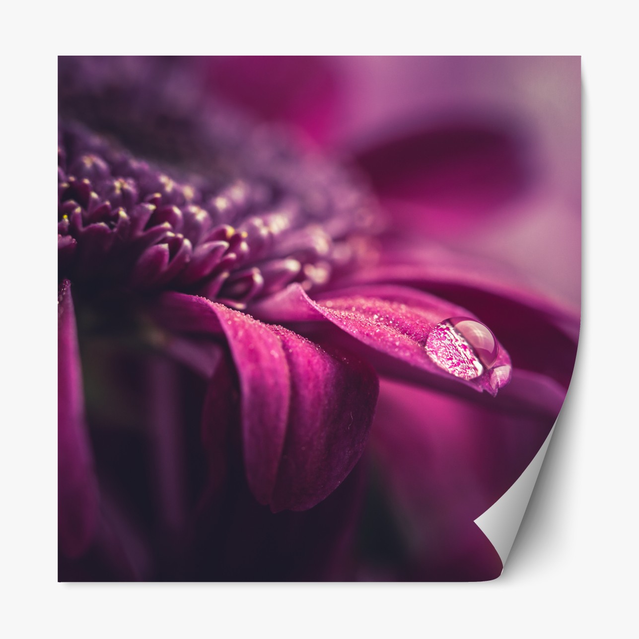 Naklejka repozycjonowalna Fioletowy makro kwiat z kroplą rosy