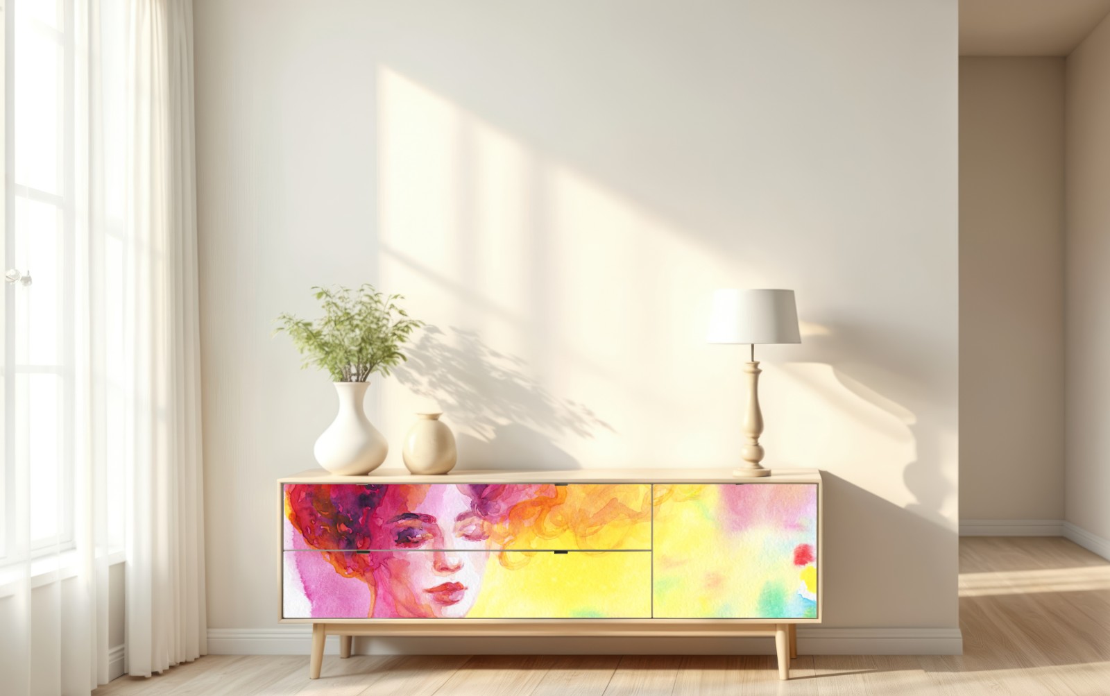 Naklejka repozycjonowalna Promienny akwarelowy portret kobiety