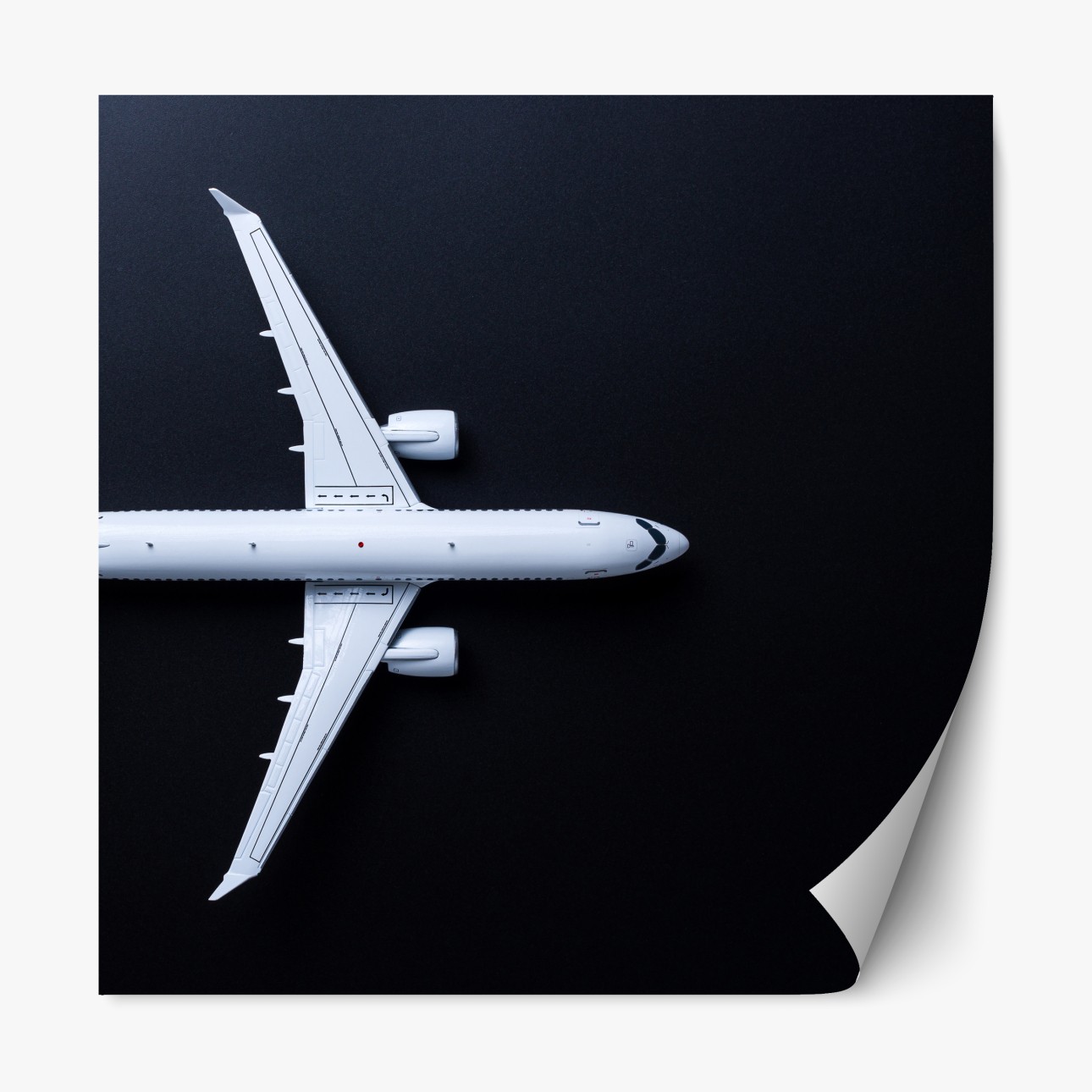 Naklejka repozycjonowalna Biały samolot widok z góry na czarnym tle
