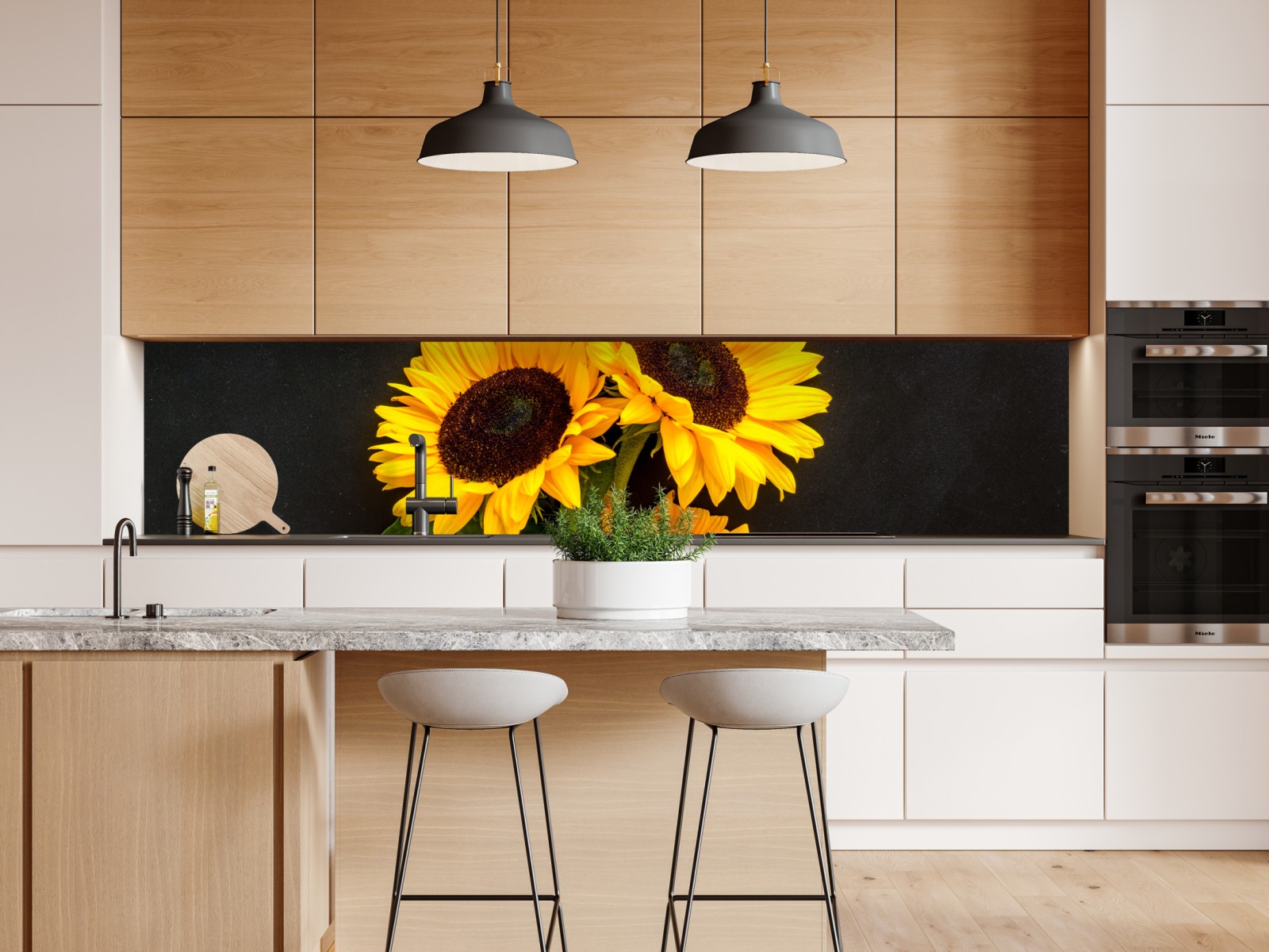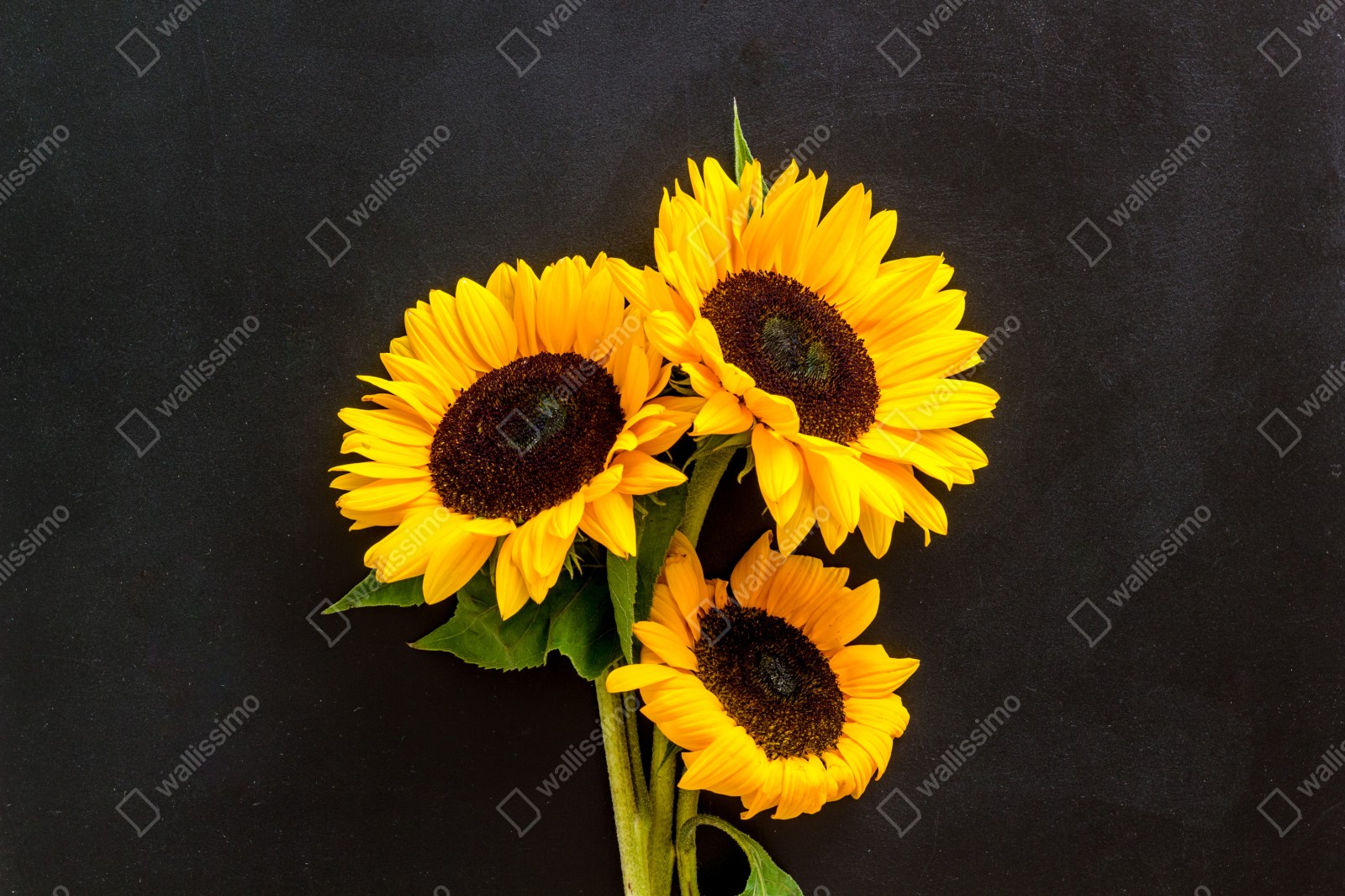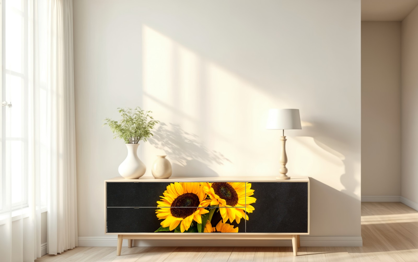 Naklejka repozycjonowalna Słoneczniki na czarnym tle