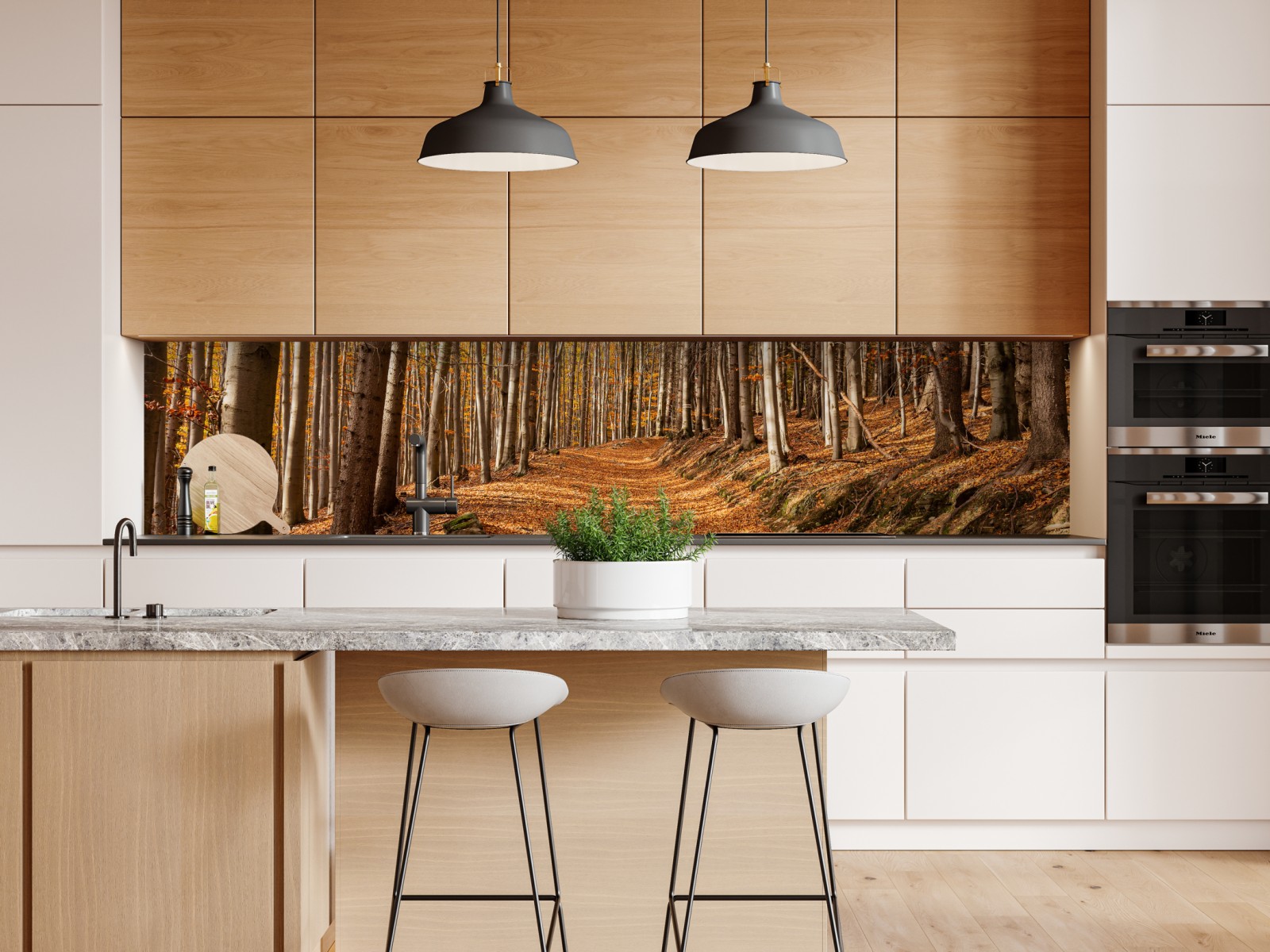 Naklejka repozycjonowalna Jesienna ścieżka leśna w złotych liściach
