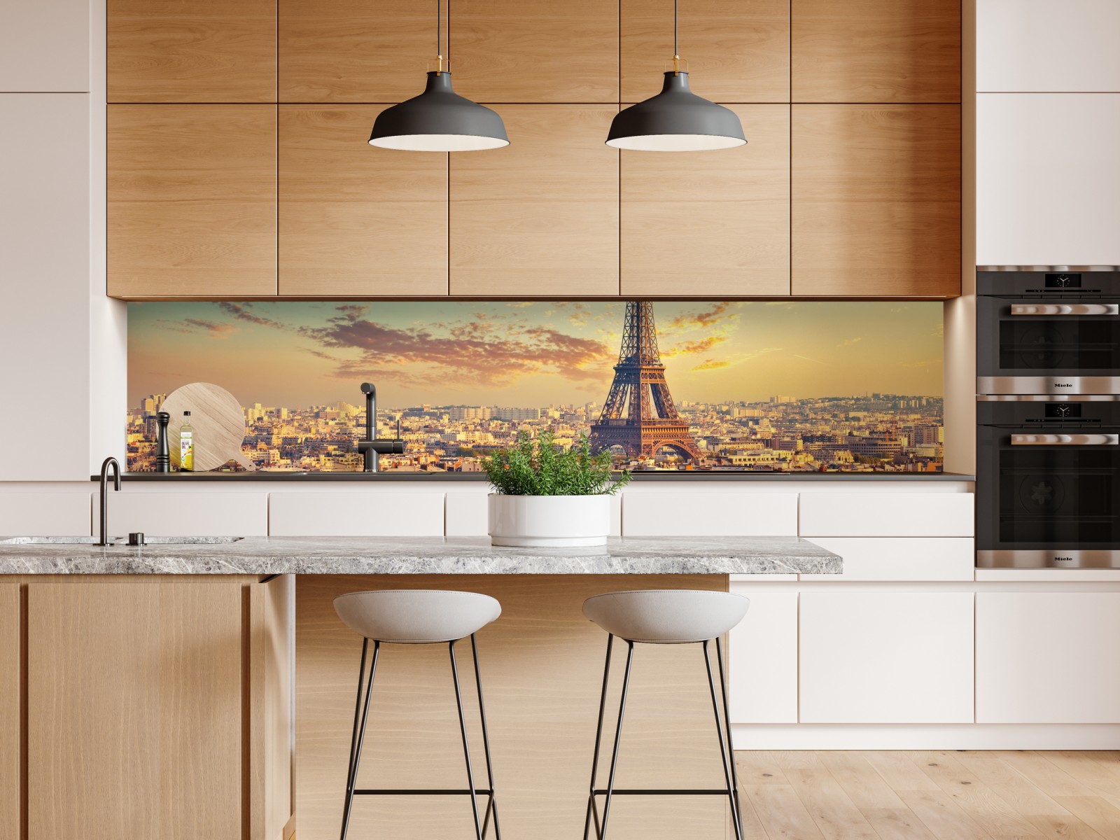 Naklejka repozycjonowalna Zachód słońca nad panoramą Paryża z Wieżą Eiffla