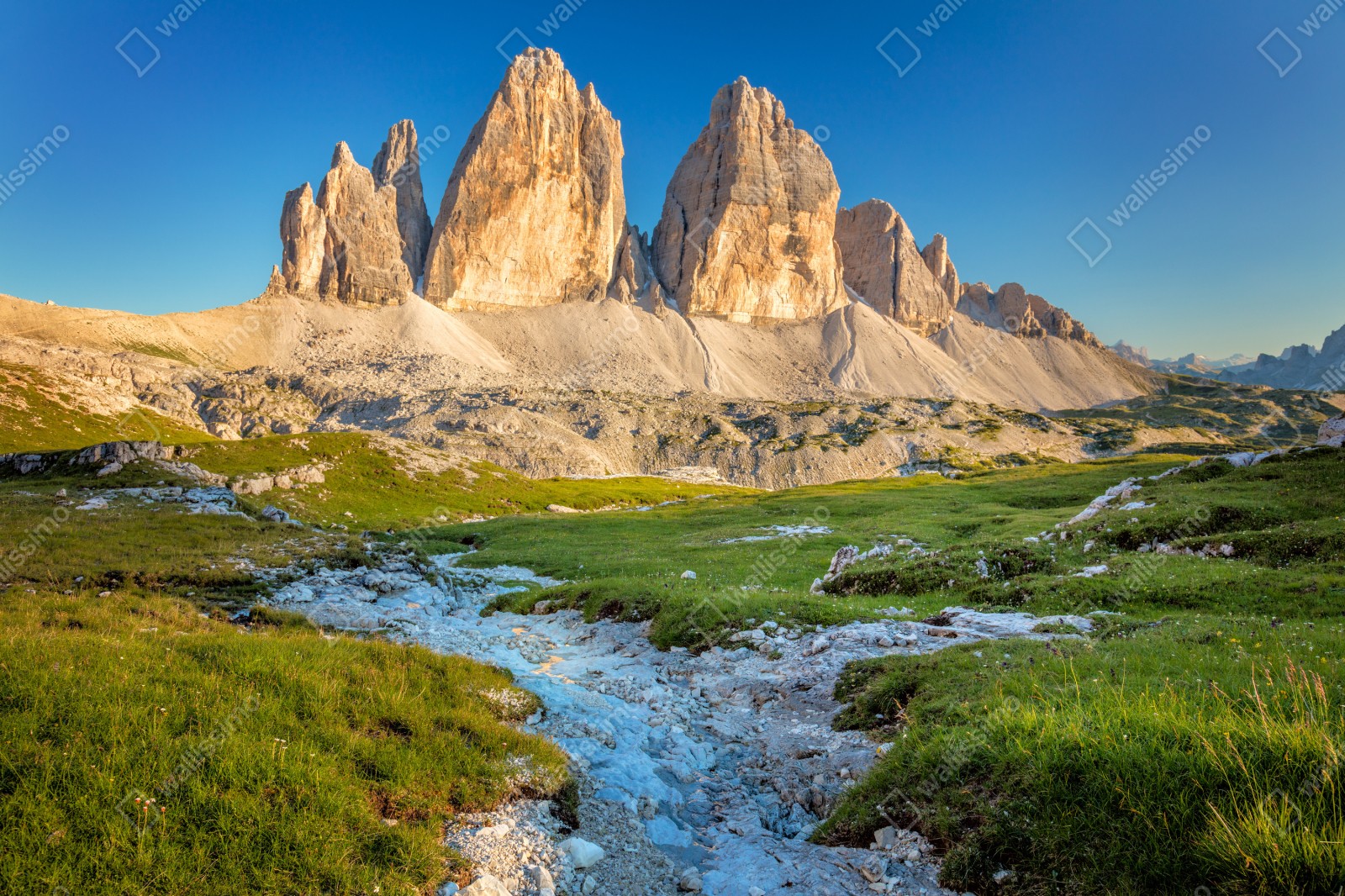 Naklejka repozycjonowalna Tre Cime di Lavaredo nad alpejską łąką