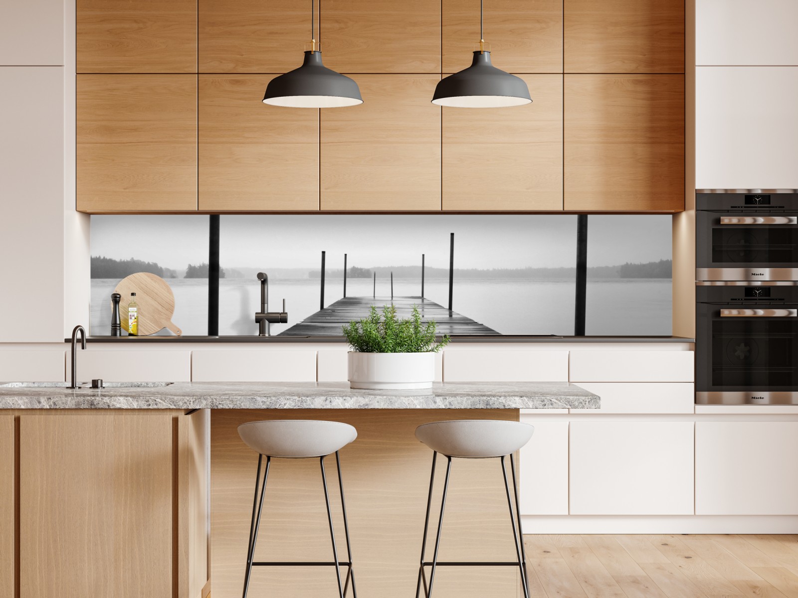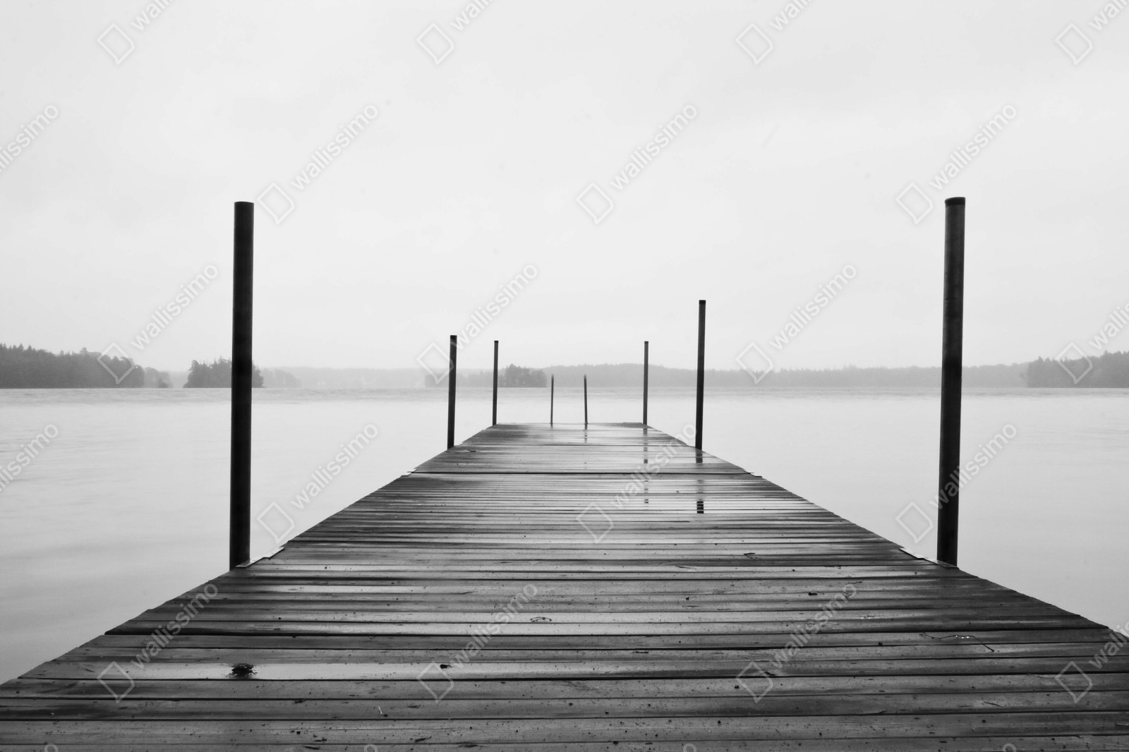 Naklejka repozycjonowalna Mglisty pomost nad jeziorem w monochromie