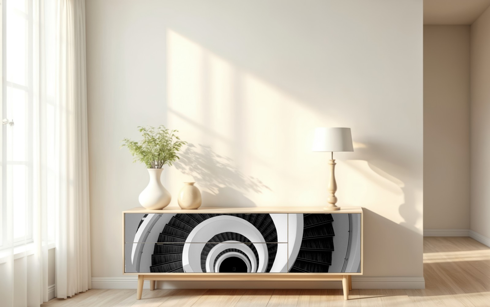 Naklejka repozycjonowalna Spiralne schody w monochromie