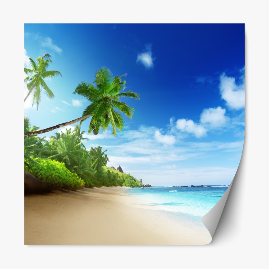 Naklejka repozycjonowalna Zachód słońca na plaży Mahe, Seszele