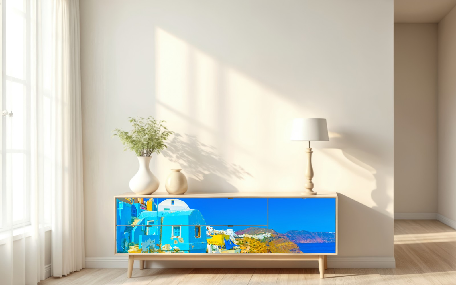 Naklejka repozycjonowalna Słoneczny widok na Oia, Santorini