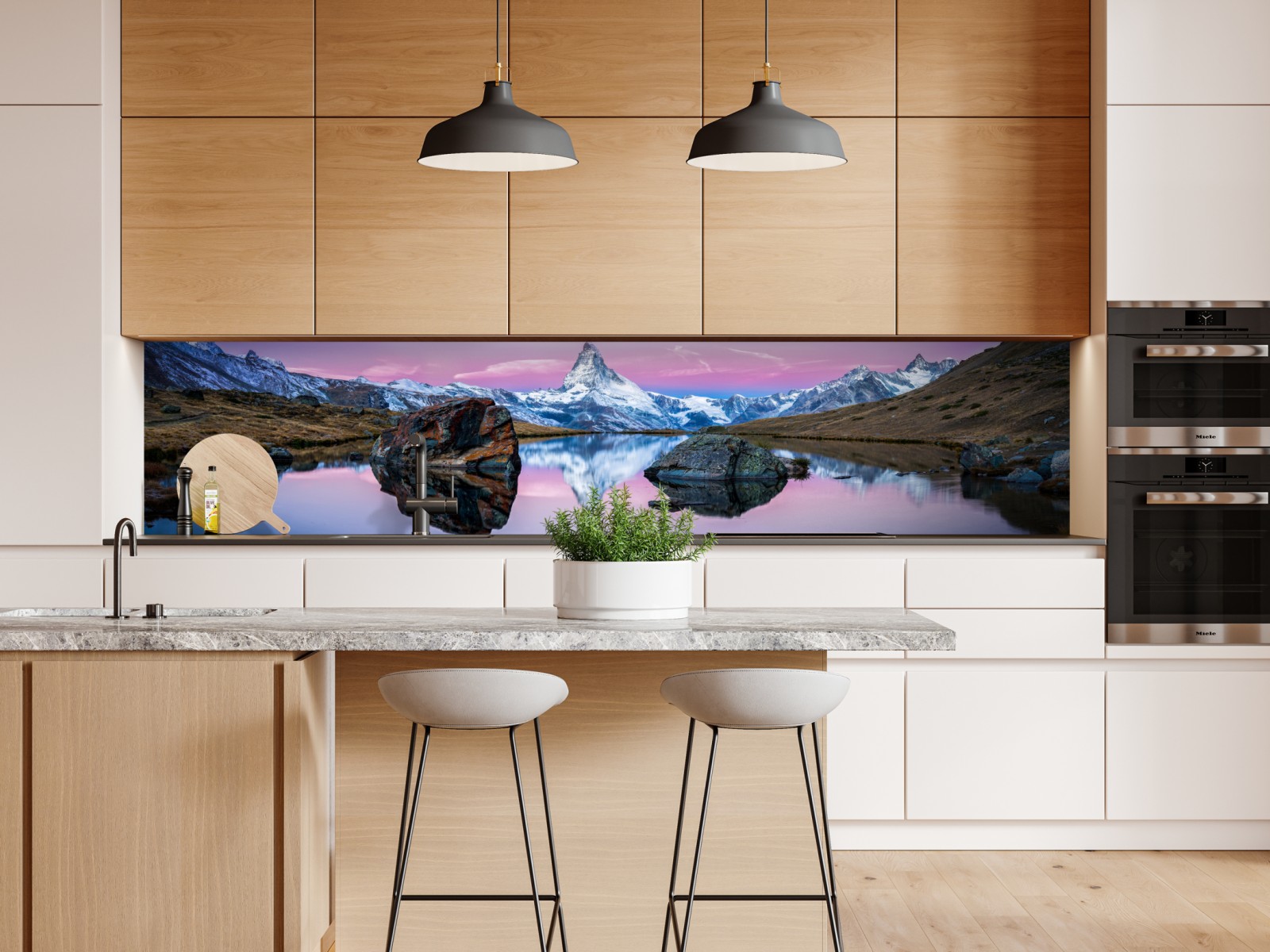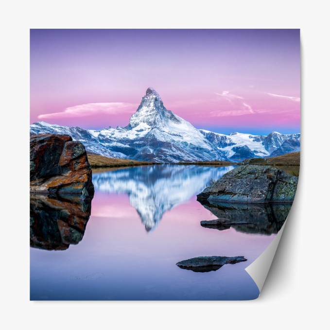 Naklejka repozycjonowalna Spokojne alpejskie odbicie o zachodzie