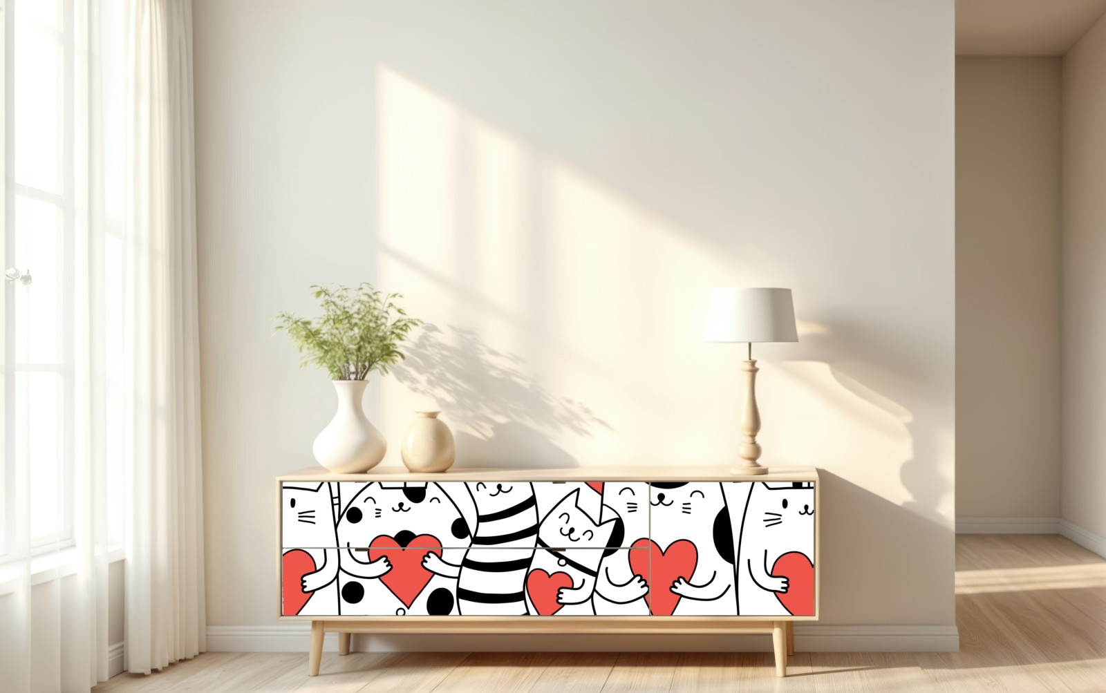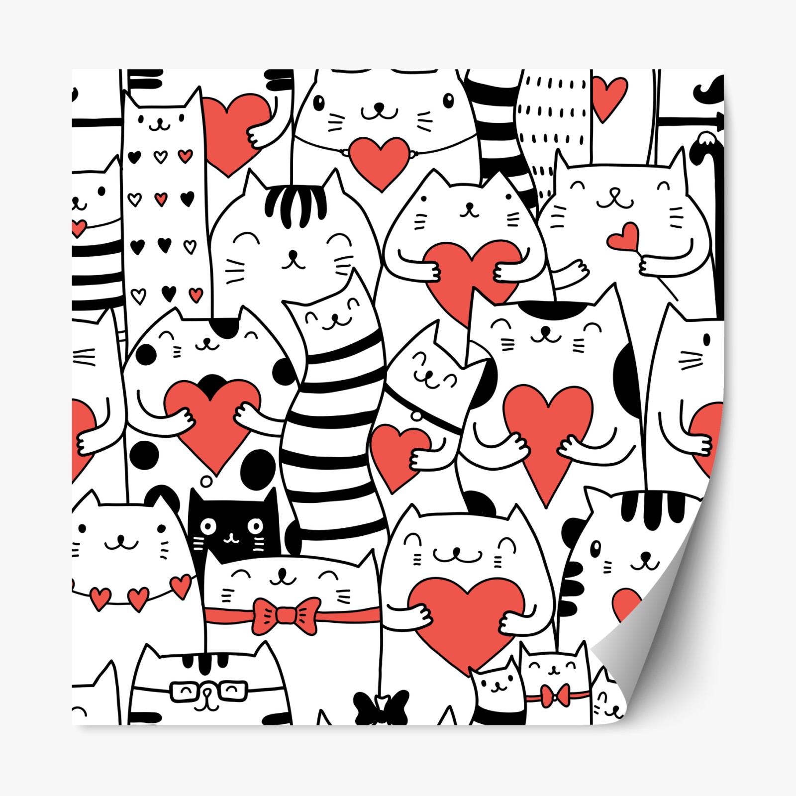 Naklejka repozycjonowalna Urocze koty z sercami wzór