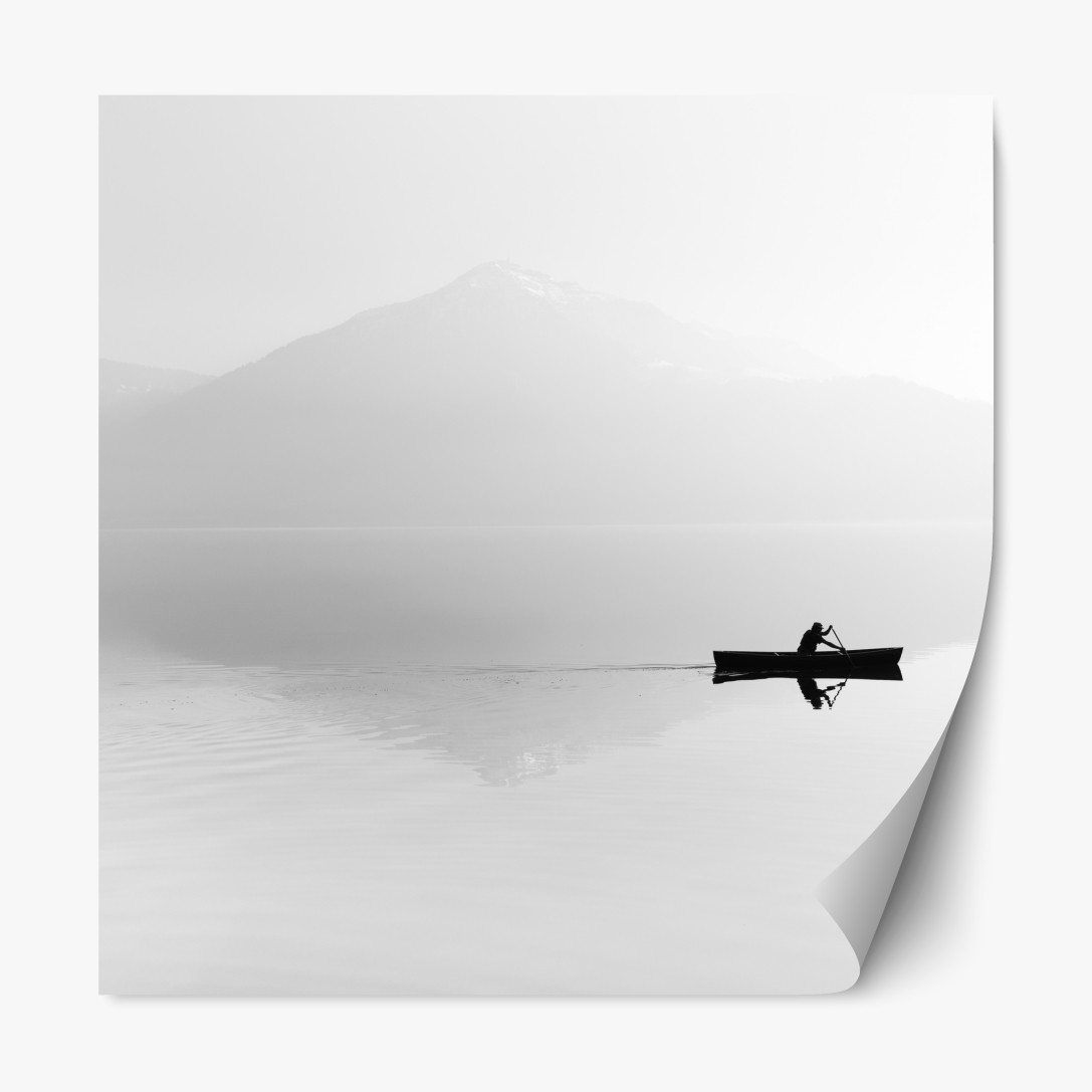 Naklejka repozycjonowalna Samotny wioślarz na mglistym jeziorze