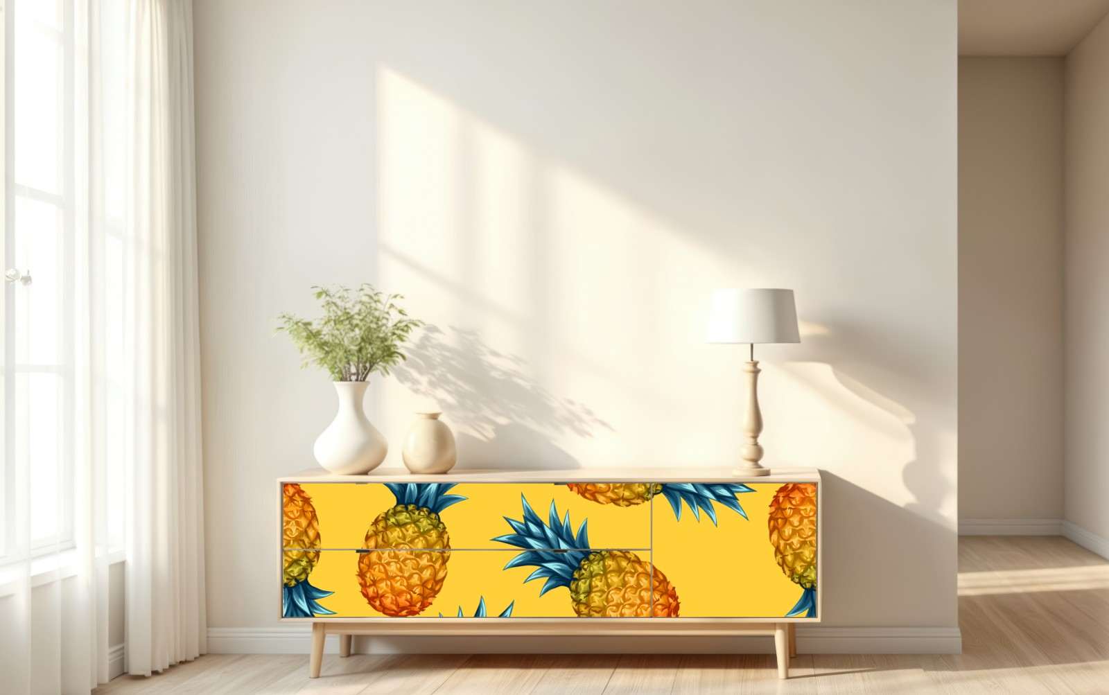 Naklejka repozycjonowalna Tropikalny wzór z ananasami na żółtym tle