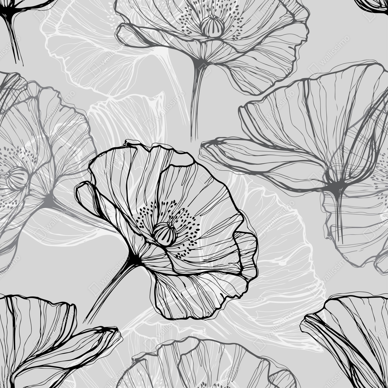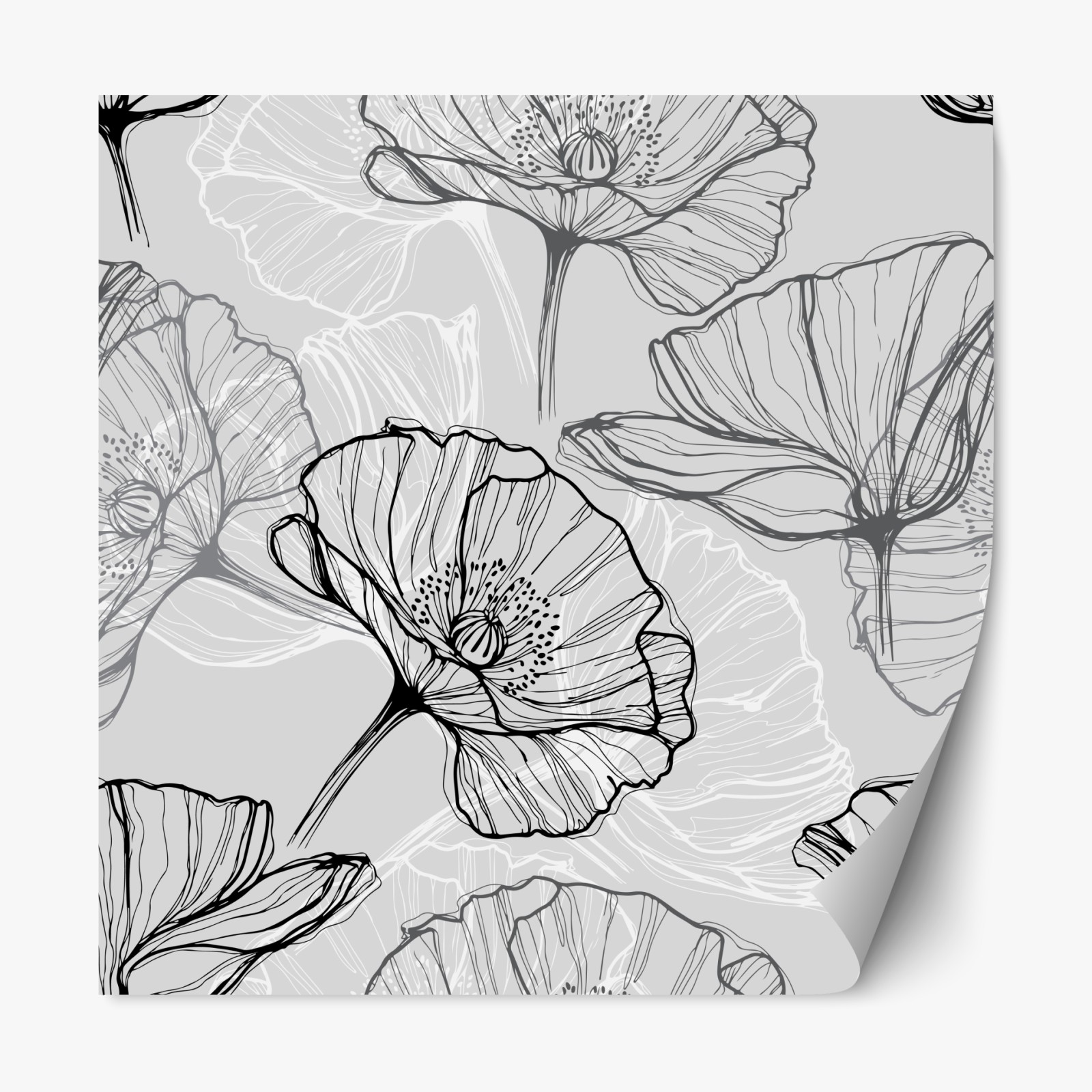 Naklejka repozycjonowalna Delikatny szary mak w rysunku liniowym