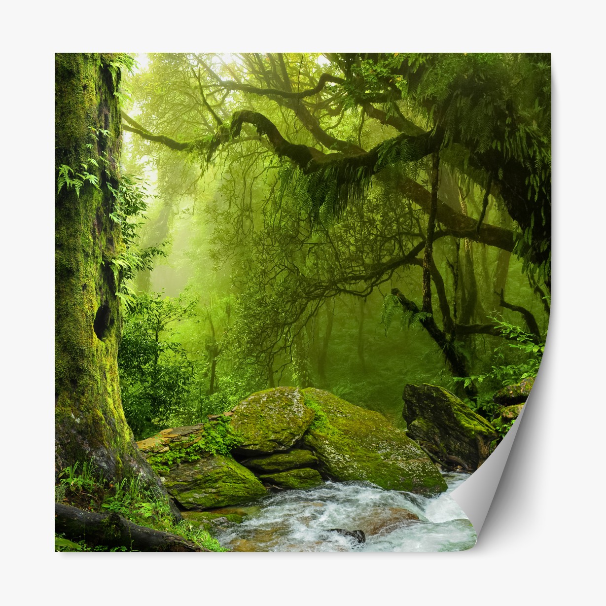 Naklejka repozycjonowalna Zaczarowany zielony leśny strumień