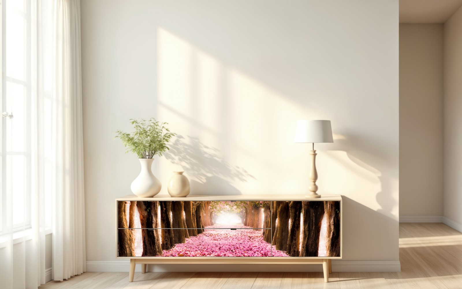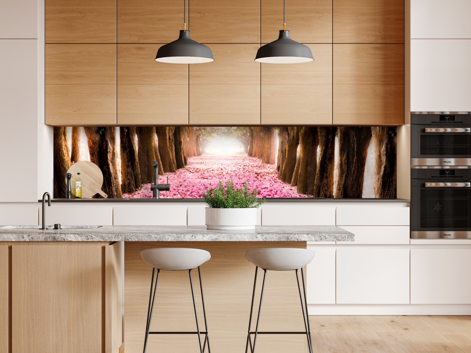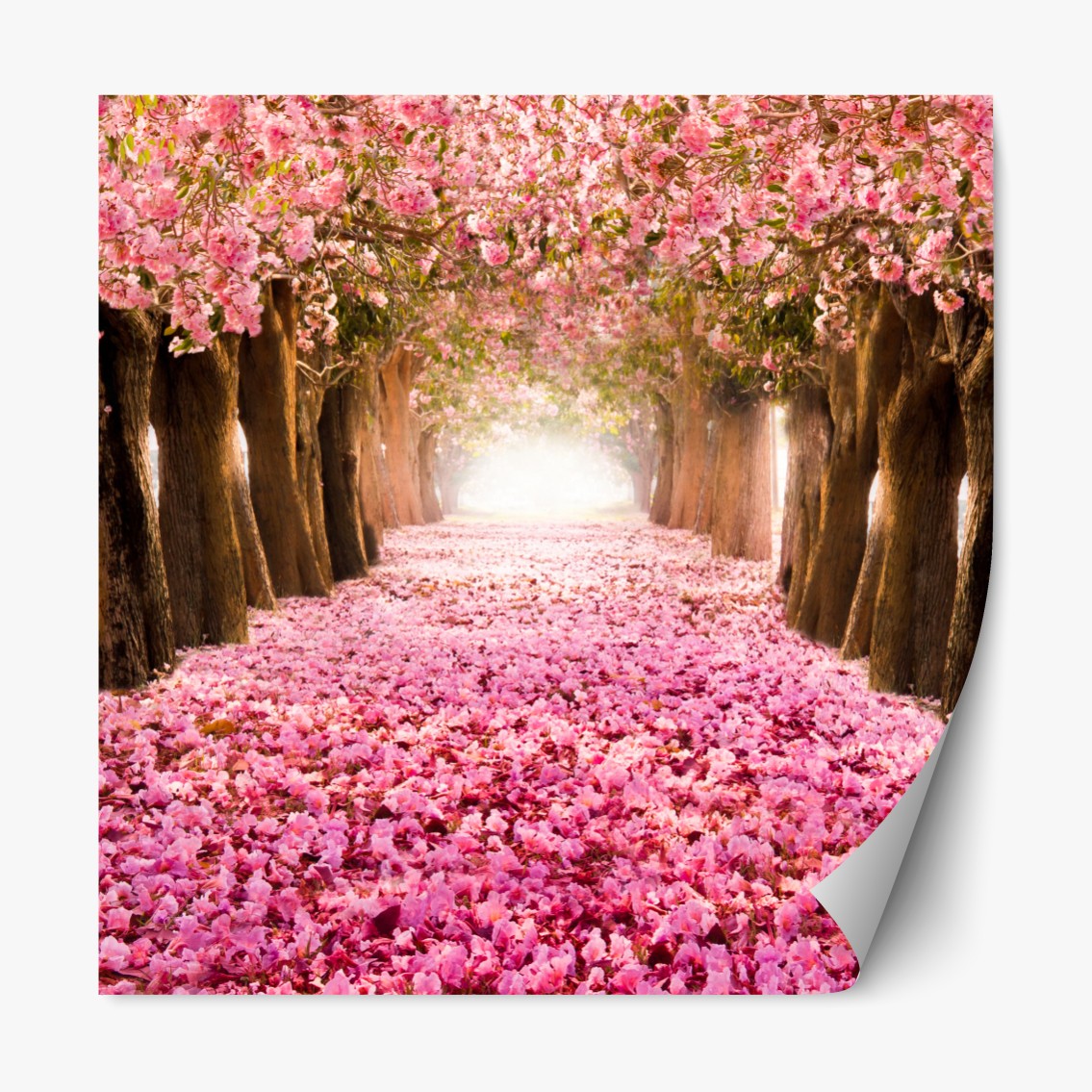 Naklejka repozycjonowalna Różowa aleja kwiatów wiśni