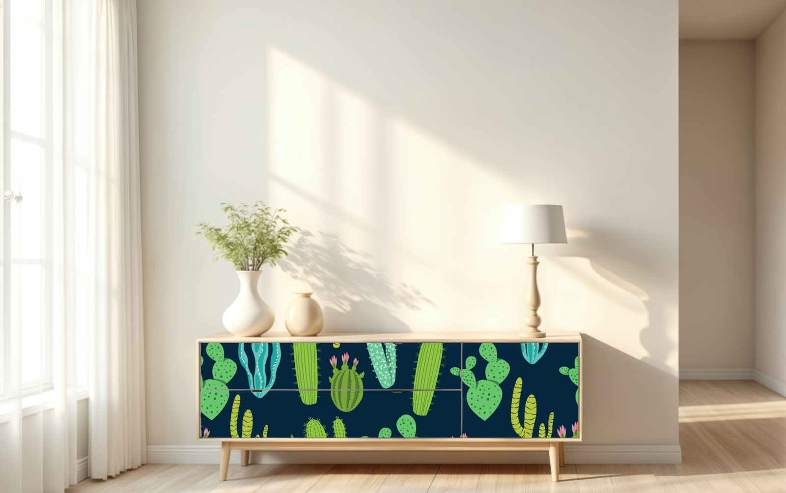 Naklejka repozycjonowalna Wzór z kaktusami i sukulentami