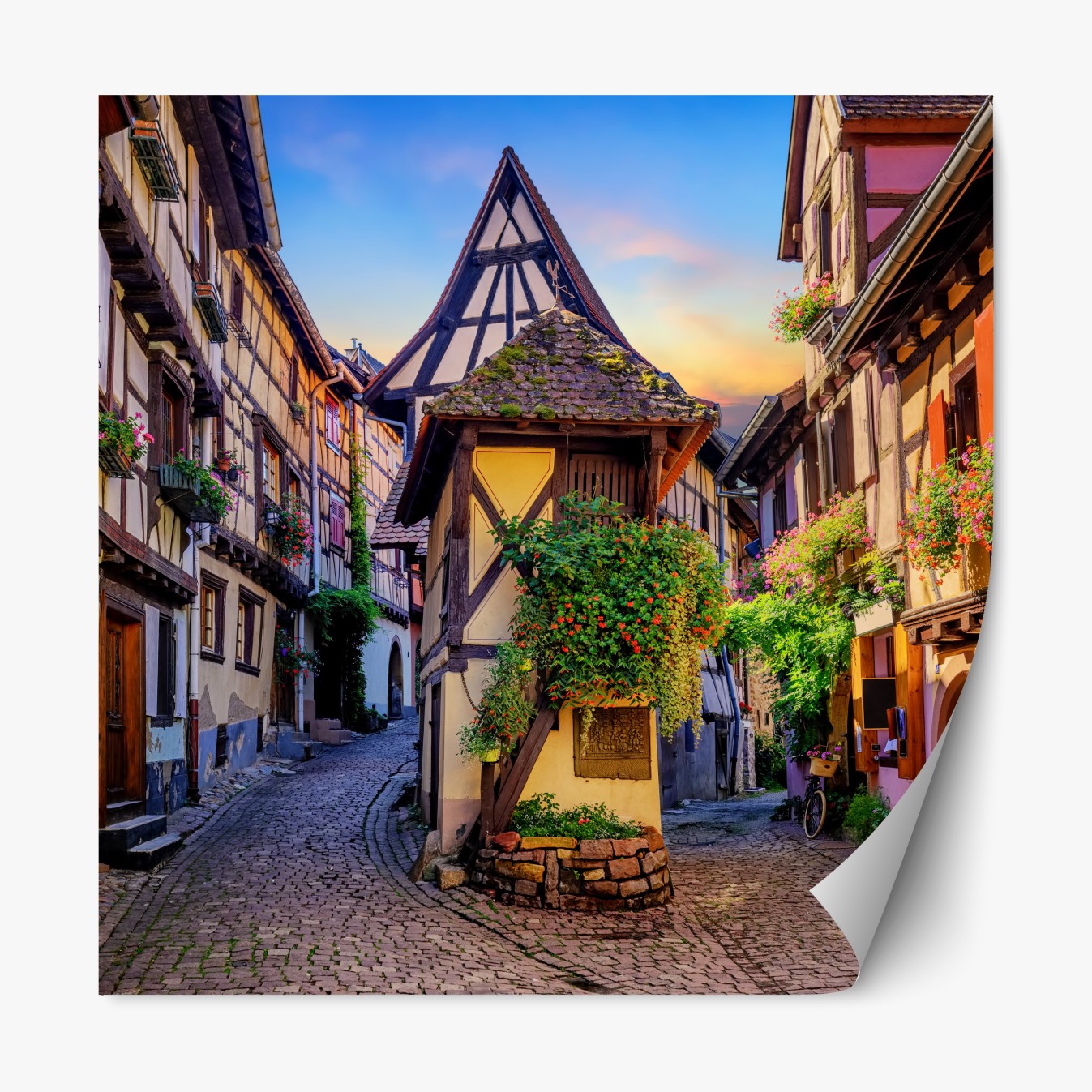 Naklejka repozycjonowalna Urokliwa ulica domów szachulcowych w Eguisheim, Alsacja