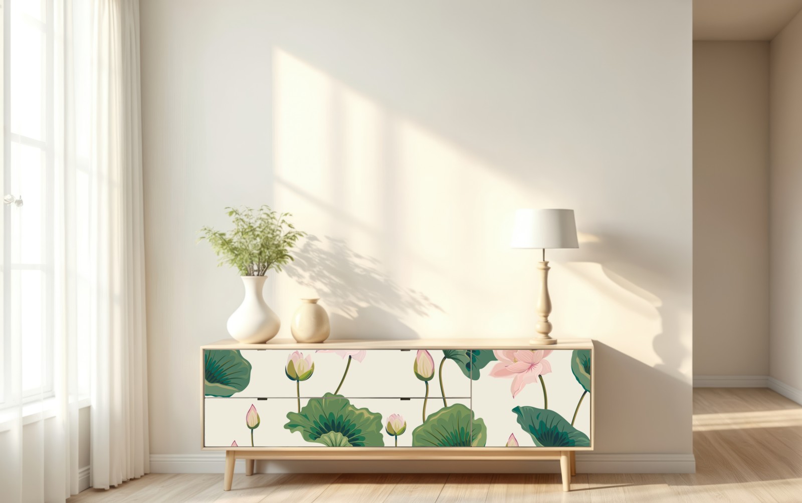 Naklejka repozycjonowalna Spokojny botaniczny wzór lotosu
