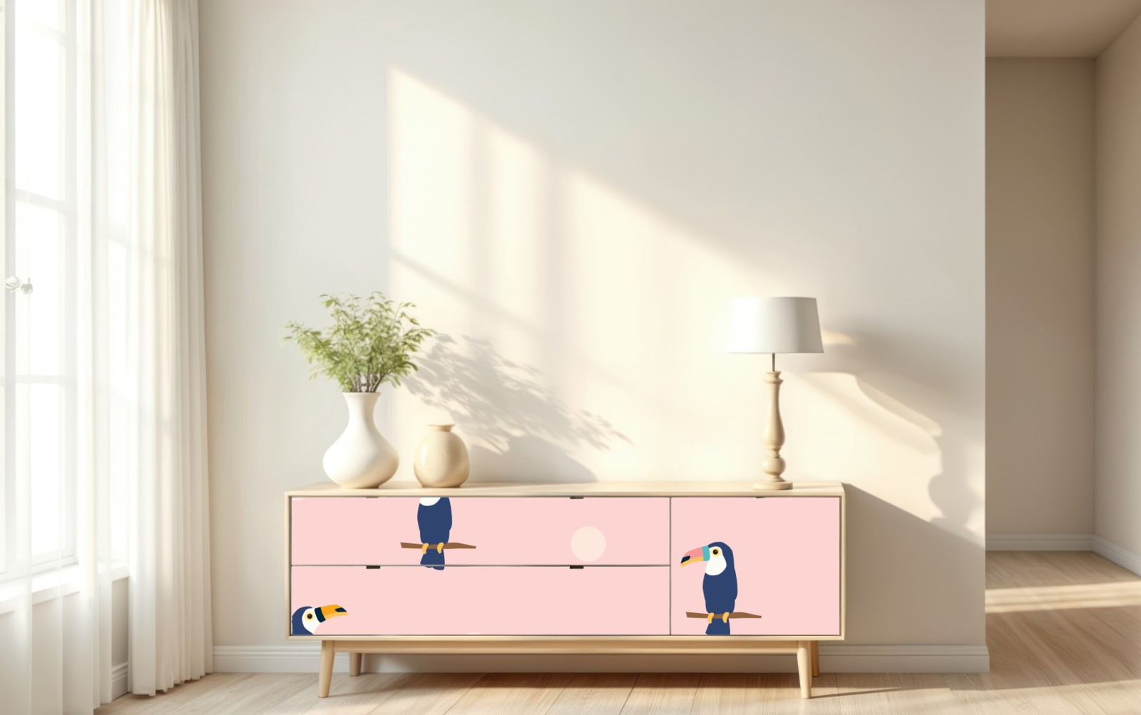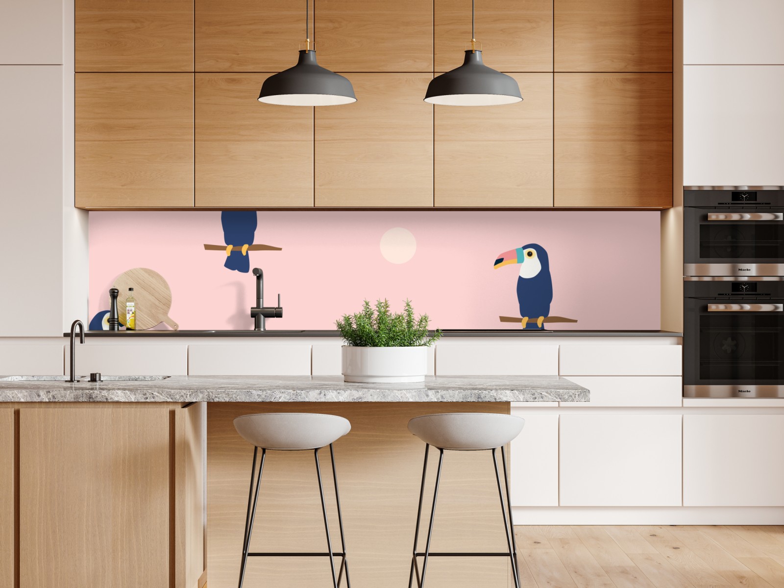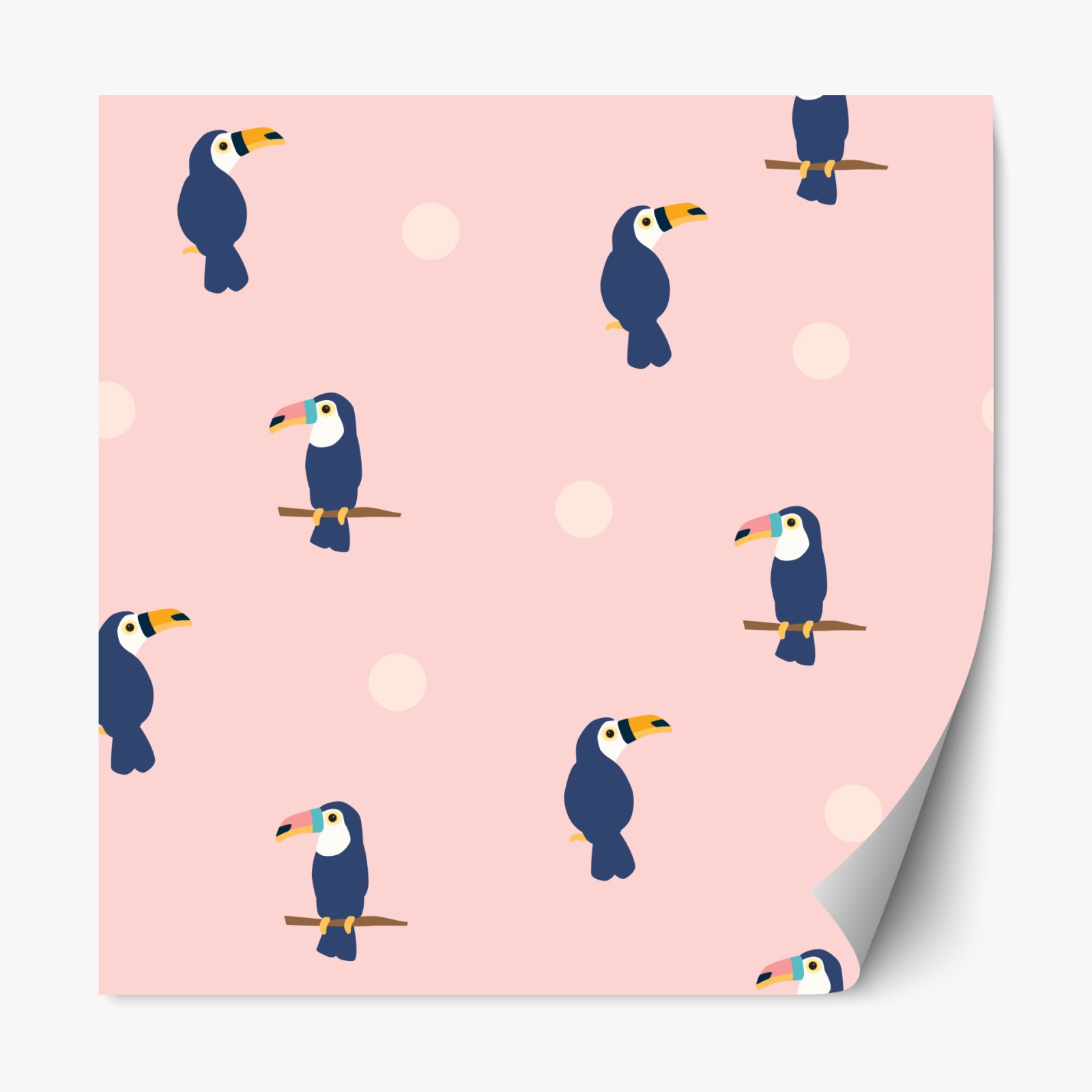 Naklejka repozycjonowalna Wesoły wzór z tukanami na pastelowym różu