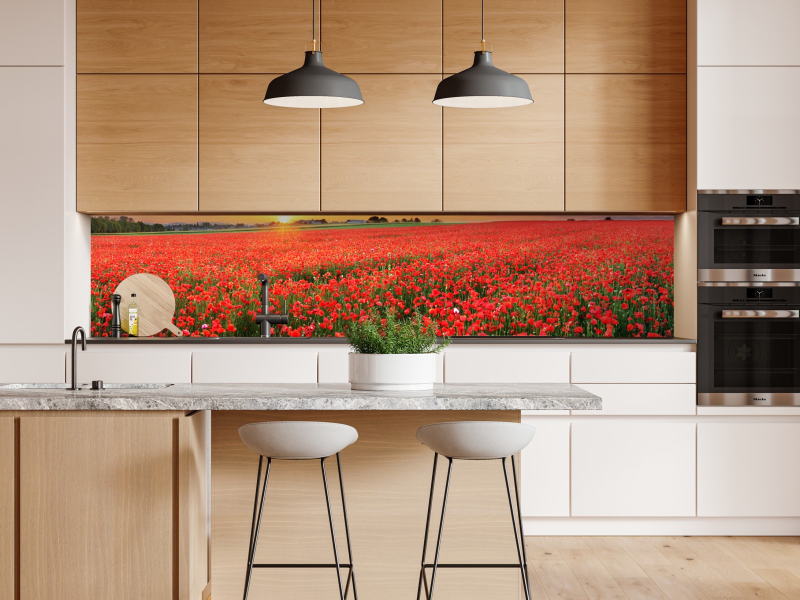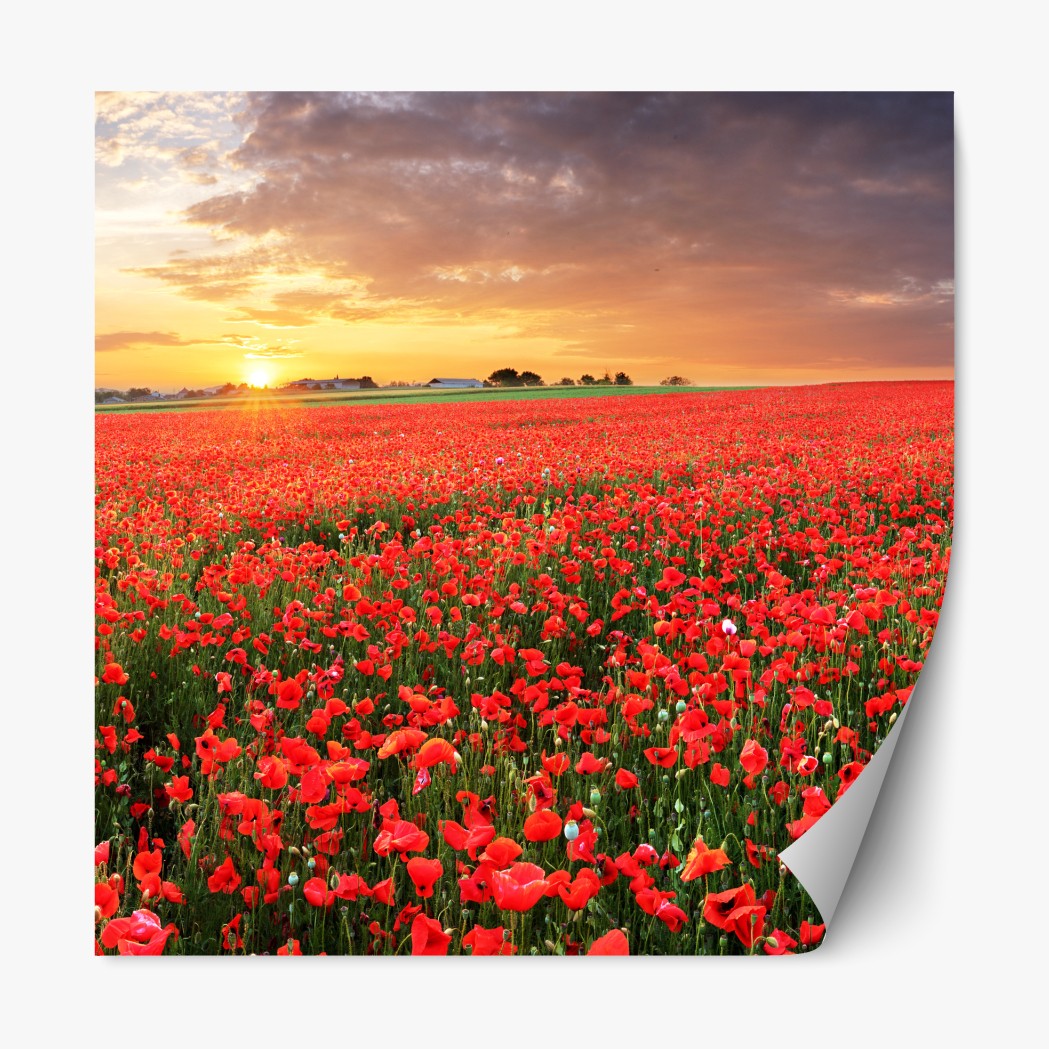 Naklejka repozycjonowalna Pole maków o zachodzie słońca