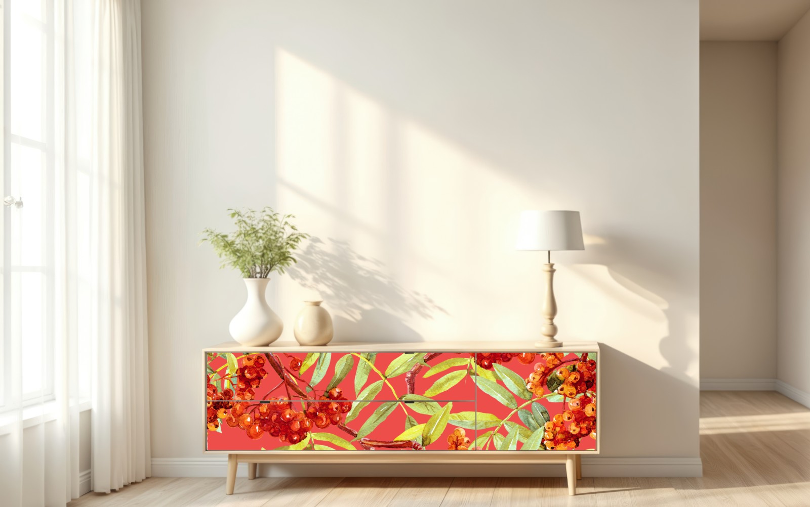 Naklejka repozycjonowalna Akwarelowy wzór jarzębiny