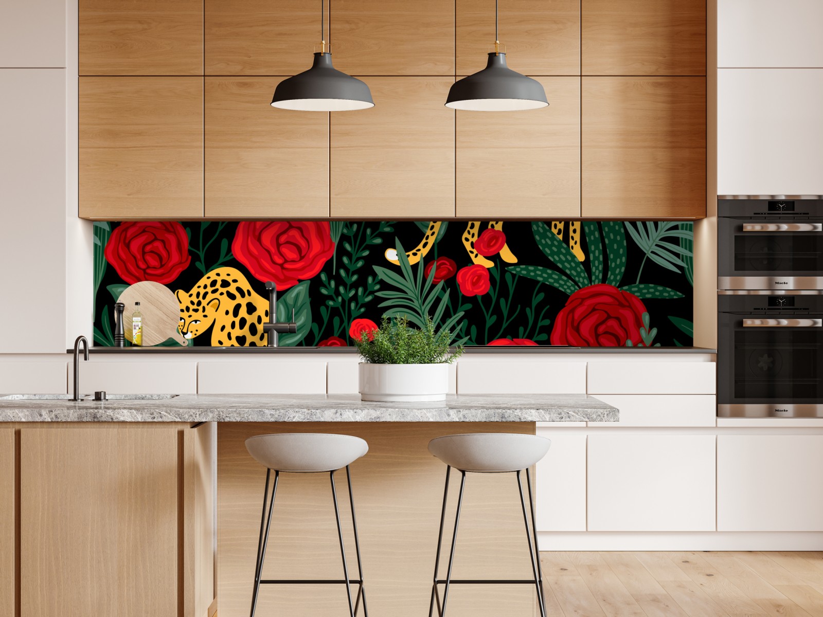 Naklejka repozycjonowalna Egzotyczny wzór z gepardami i różami