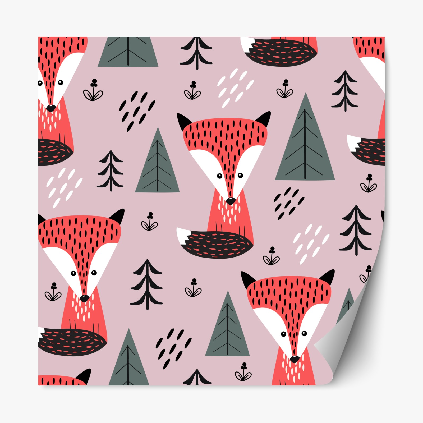 Naklejka repozycjonowalna Zabawny wzór z lisami w lesie