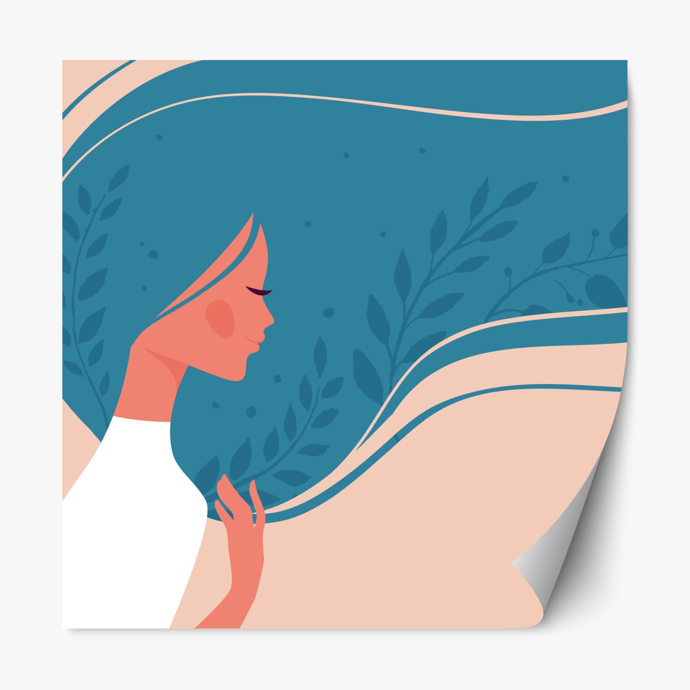 Naklejka repozycjonowalna Spokojny kwiatowy profil z falującymi włosami