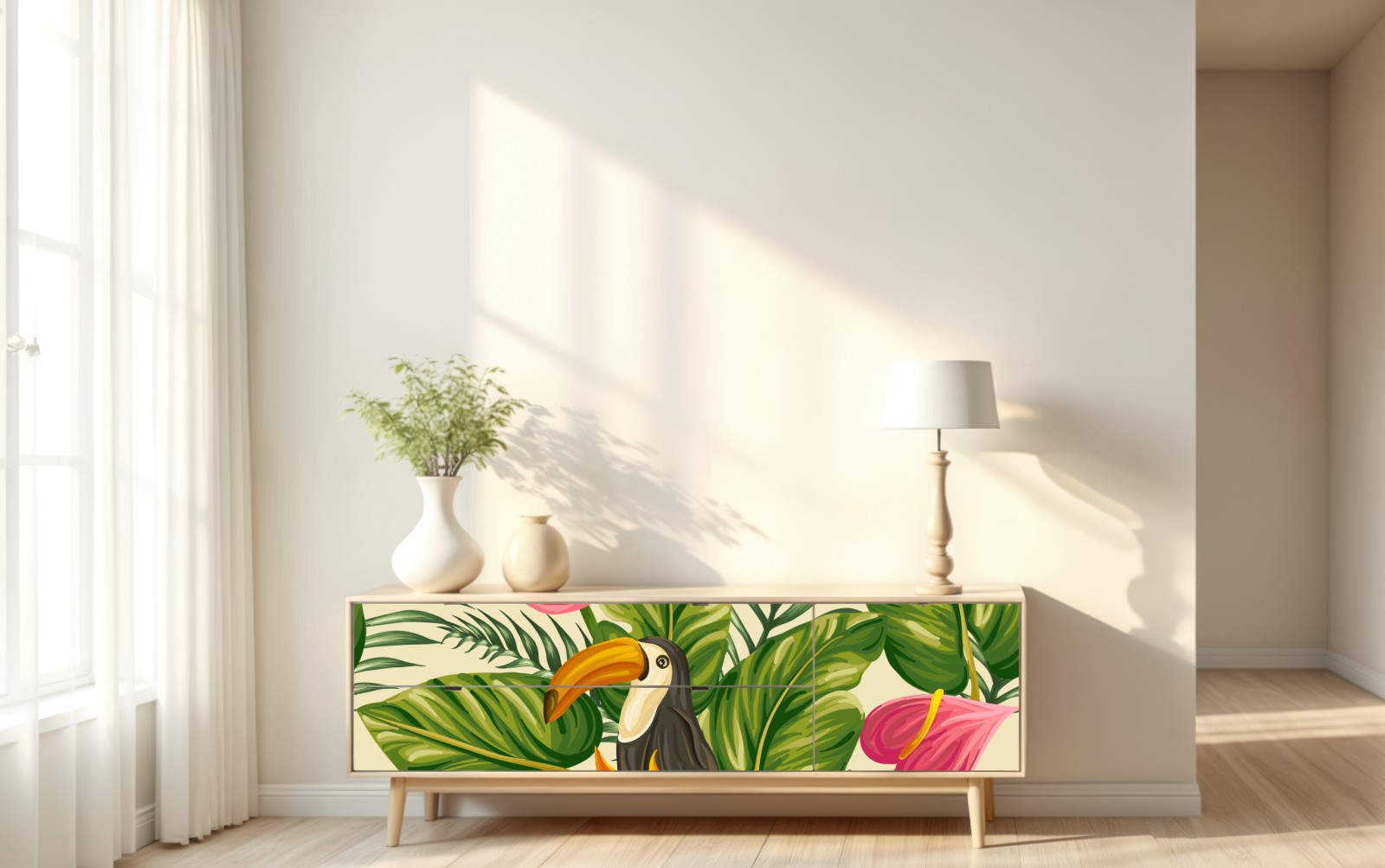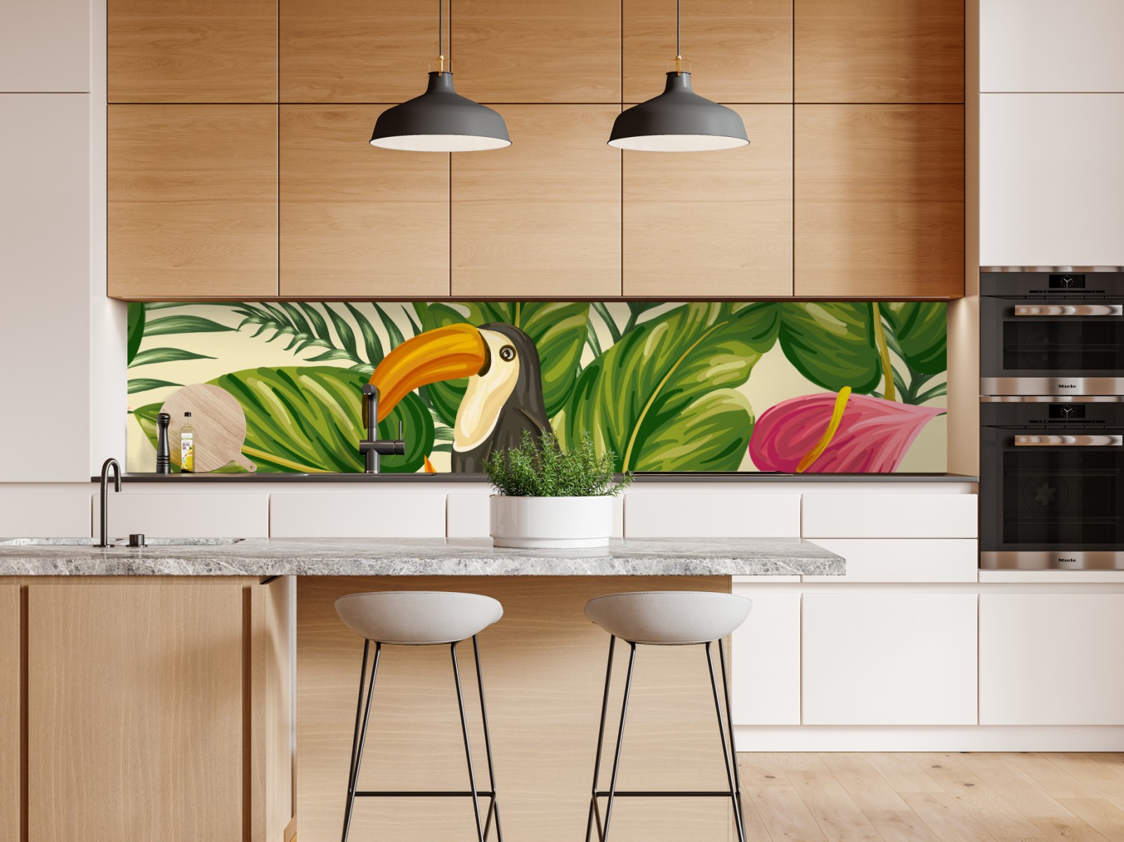 Naklejka repozycjonowalna Tropikalny wzór botaniczny z tukanem
