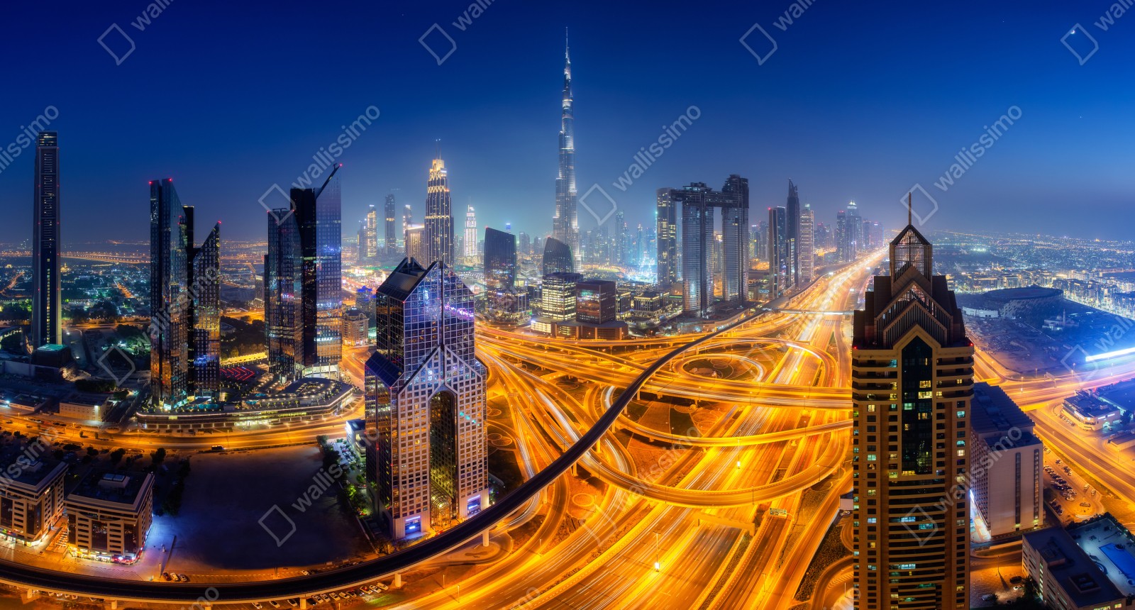 Naklejka repozycjonowalna Panorama nocnego Dubaju