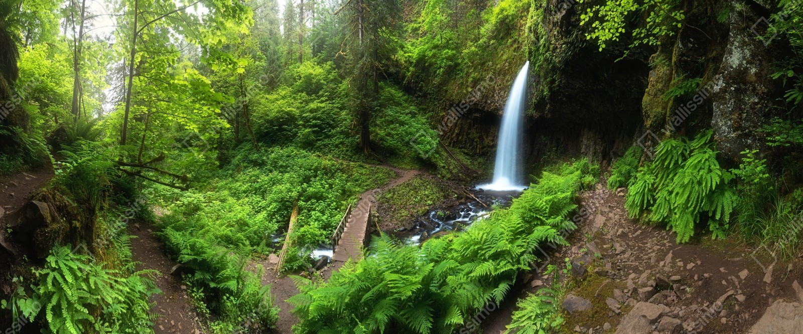 Naklejka repozycjonowalna Bujny leśny wodospad panorama