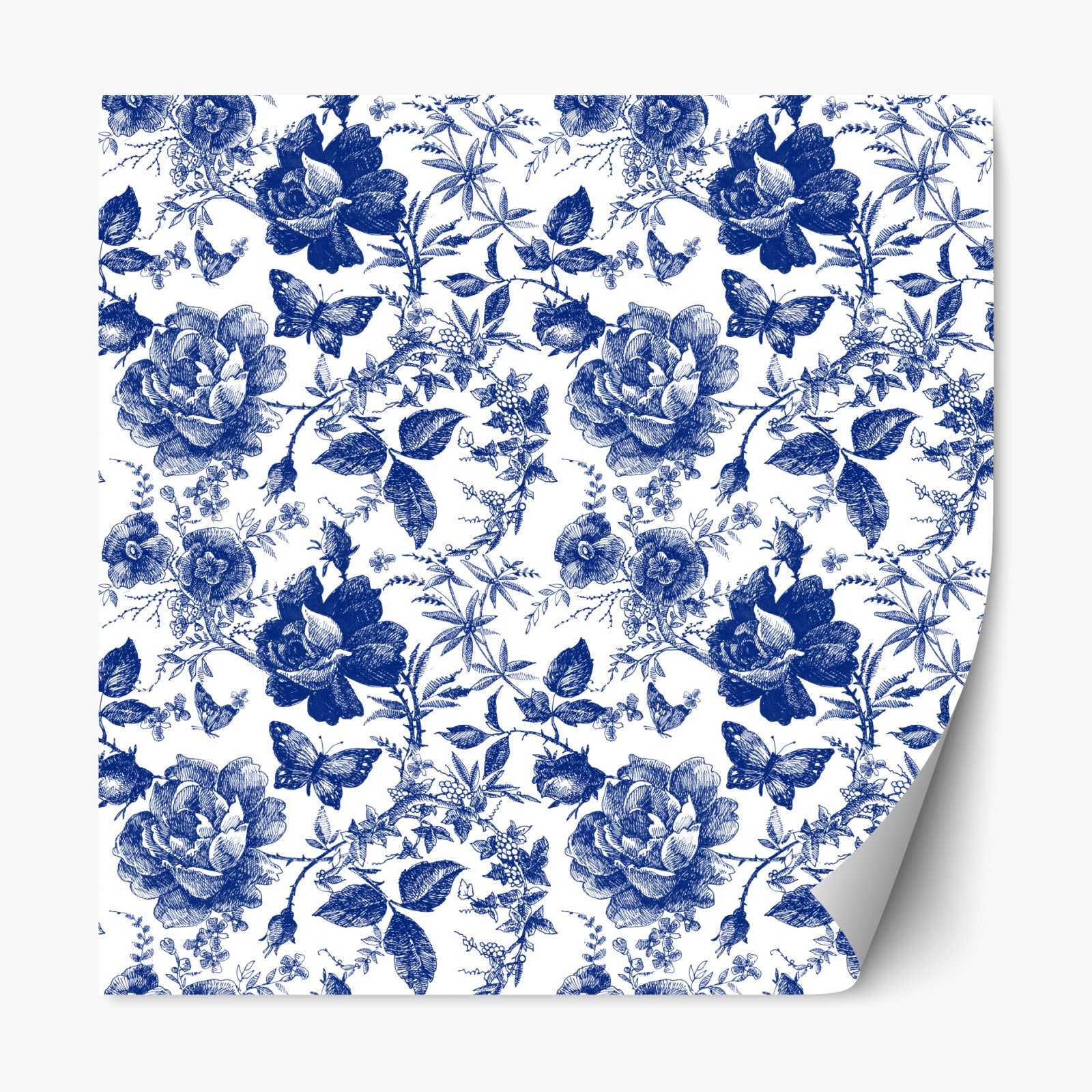 Naklejka repozycjonowalna Niebieski kwiatowy wzór toile