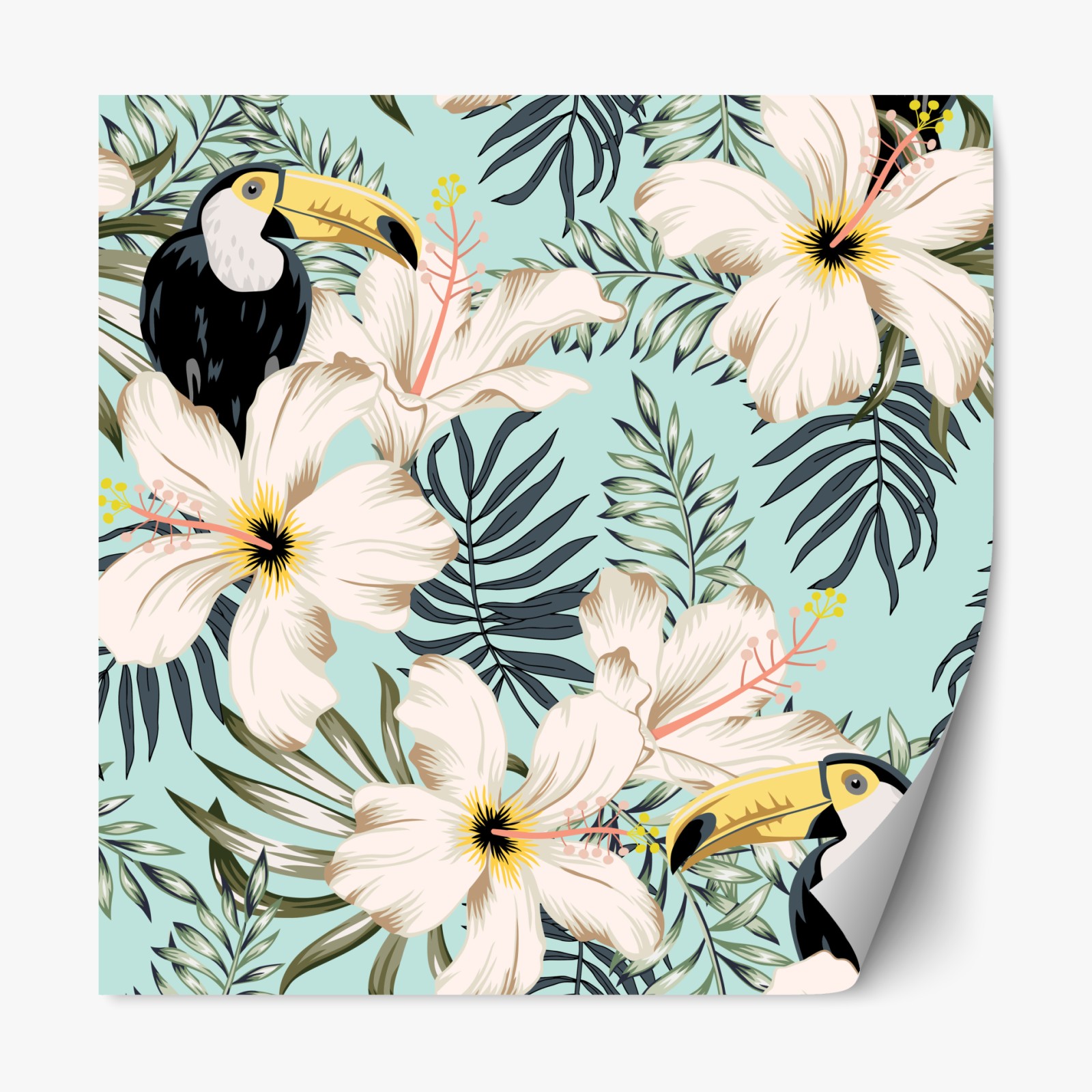 Naklejka repozycjonowalna Tropikalny wzór z tukanem i kwiatami