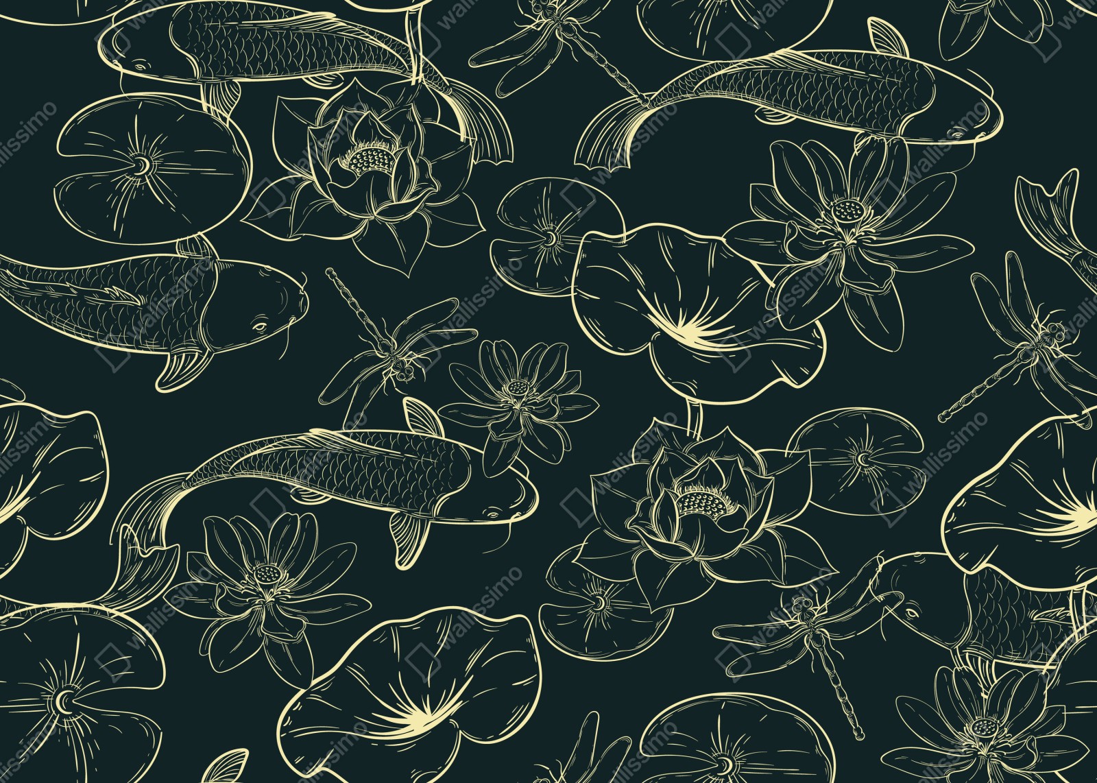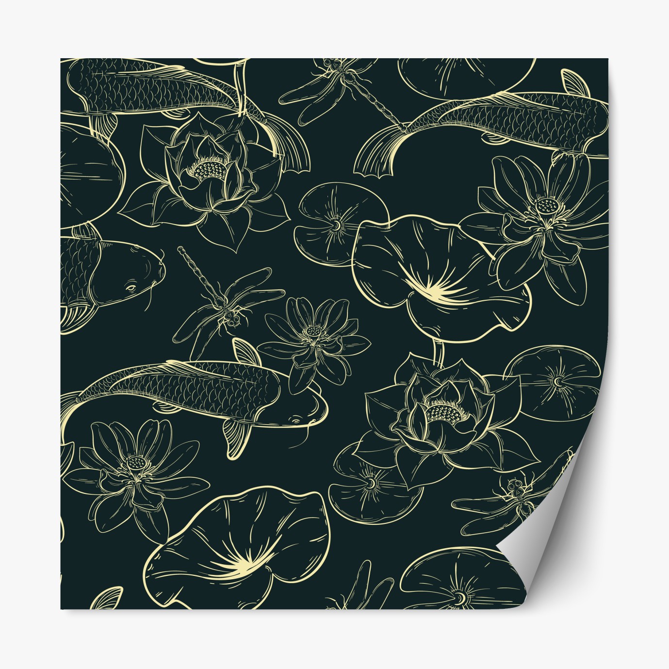Naklejka repozycjonowalna Ręcznie rysowany wzór koi i lotosu