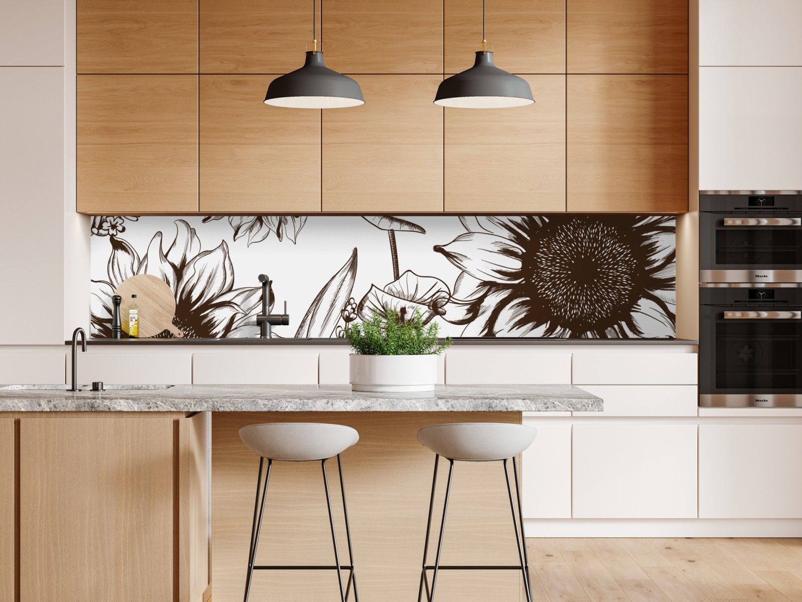 Naklejka repozycjonowalna Ilustracja botaniczna słonecznik w sepii