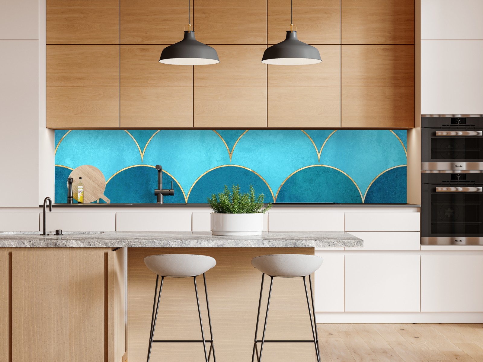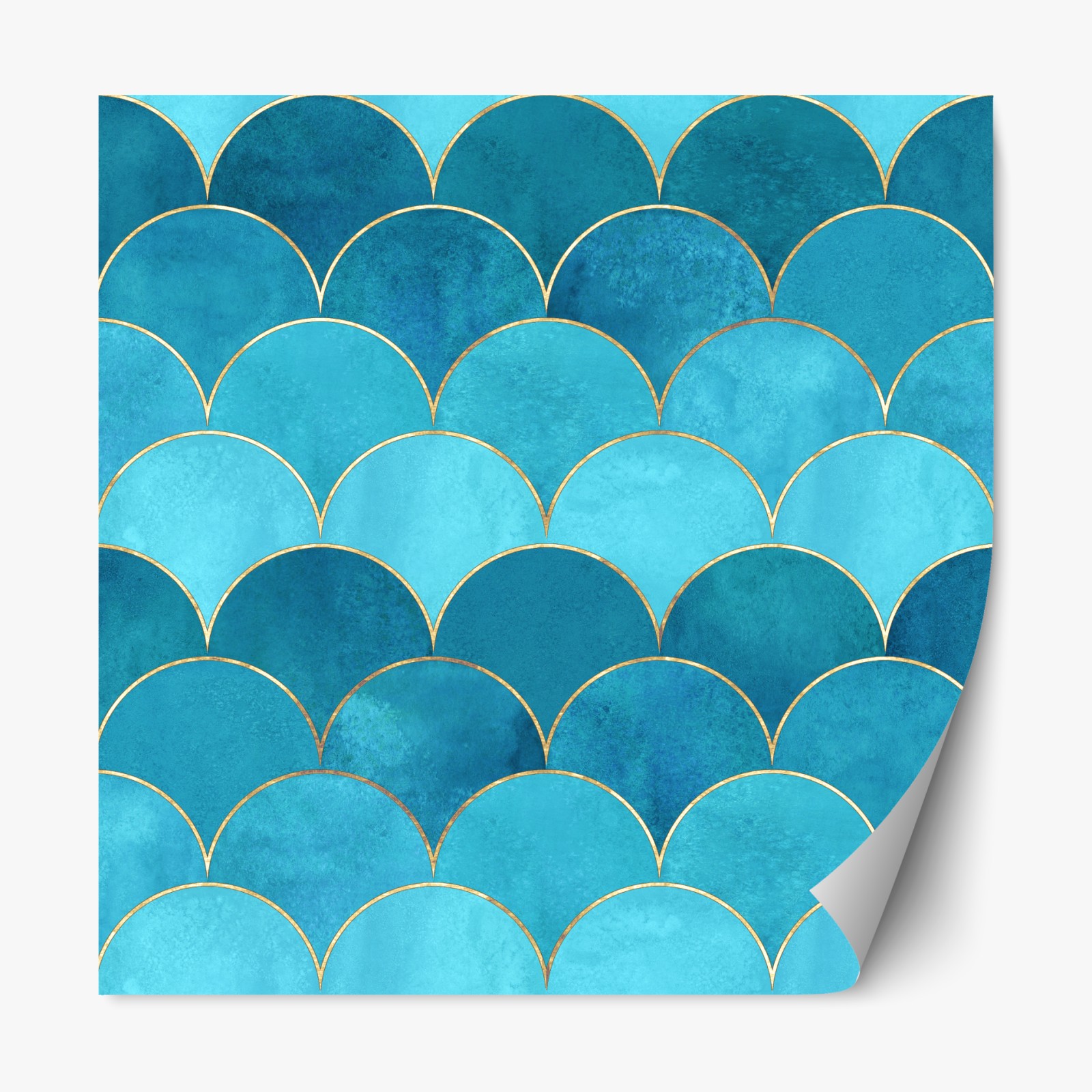 Naklejka repozycjonowalna Turkusowy wzór łusek z złotymi detalami