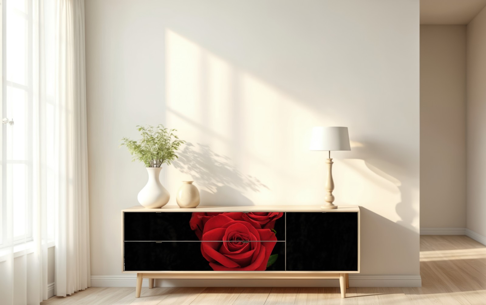 Naklejka repozycjonowalna Czerwone róże na czarnym tle