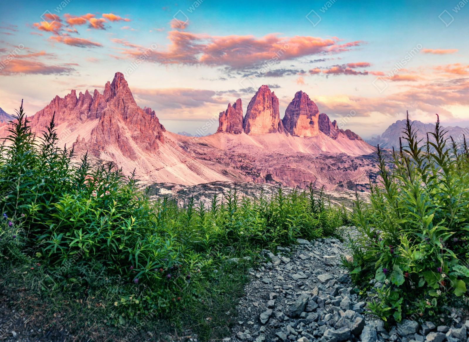 Naklejka repozycjonowalna Zachód słońca w Tre Cime di Lavaredo
