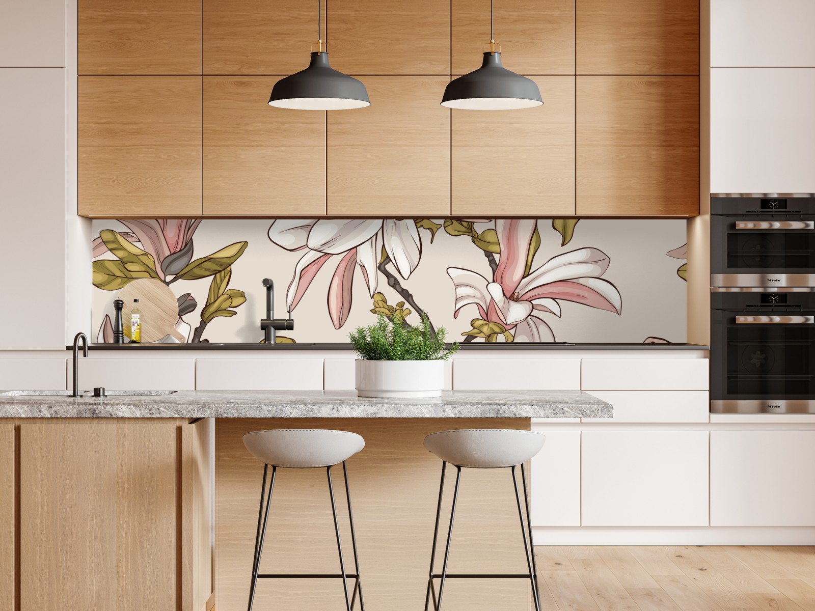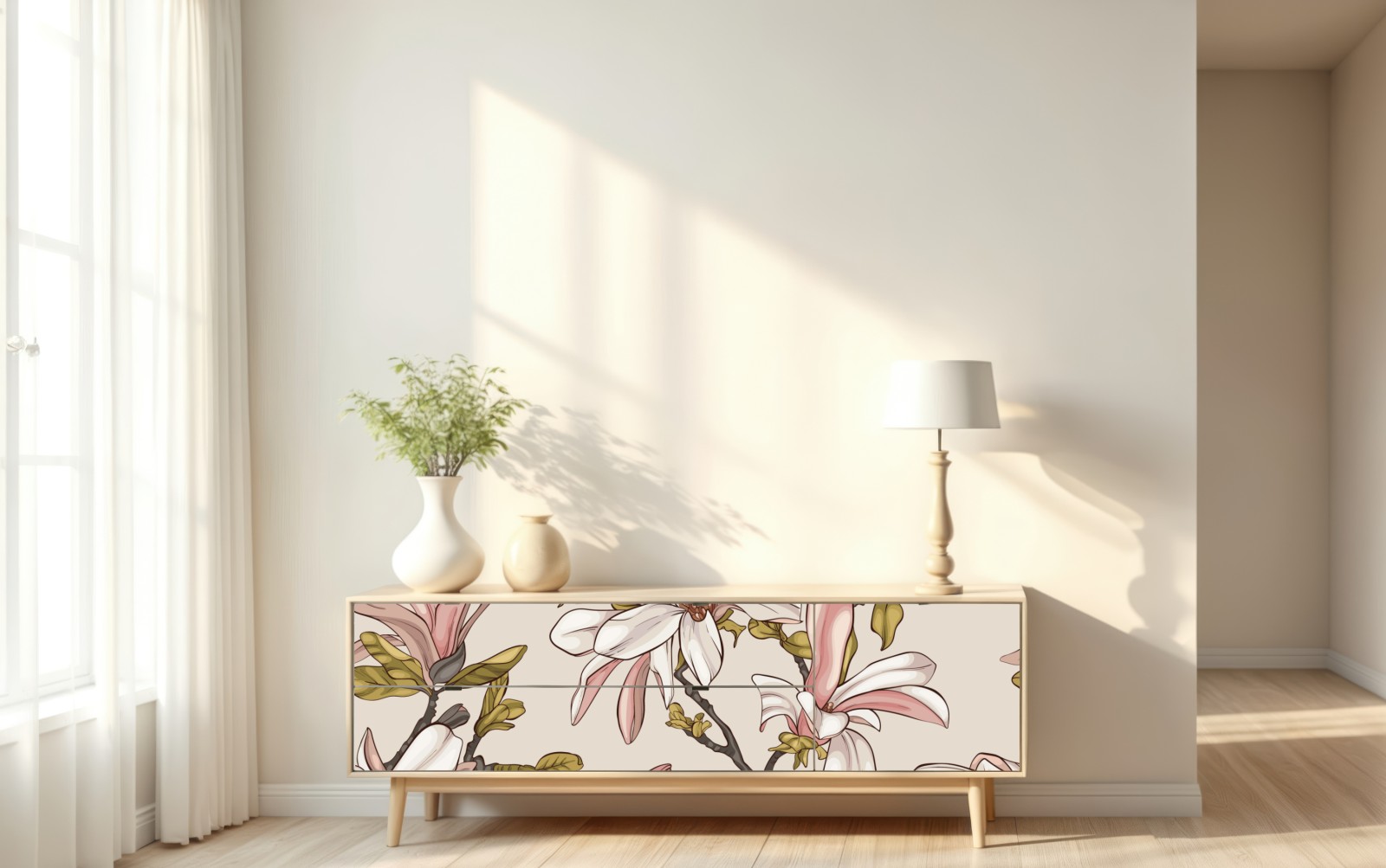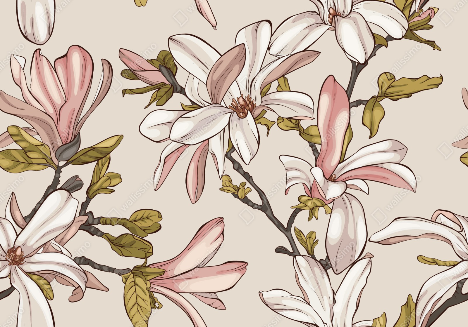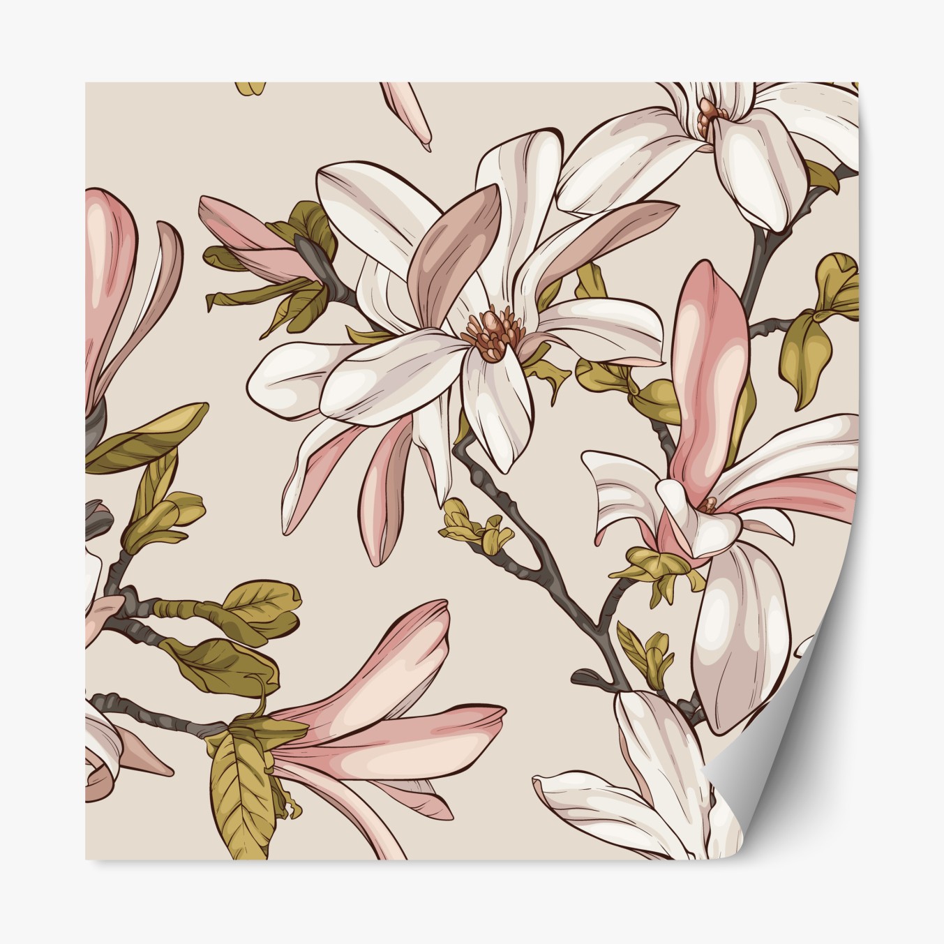 Naklejka repozycjonowalna Pastelowe magnolie na beżowym tle