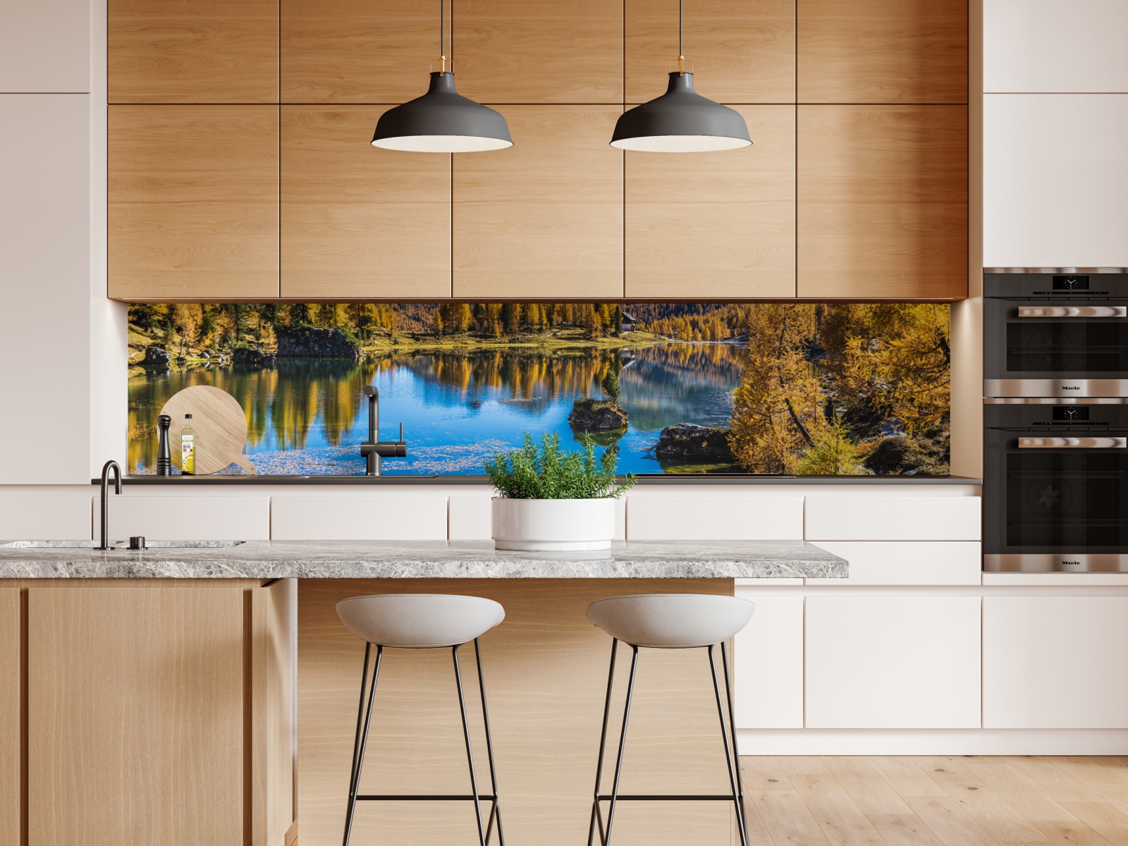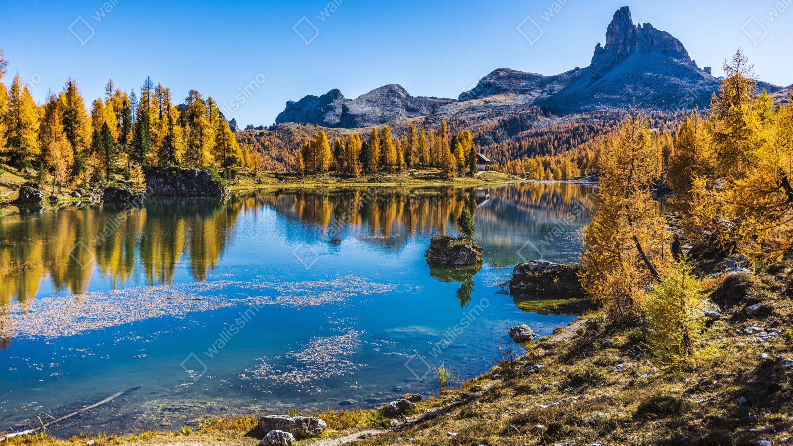 Naklejka repozycjonowalna Jesienne alpejskie jezioro z odbiciami gór