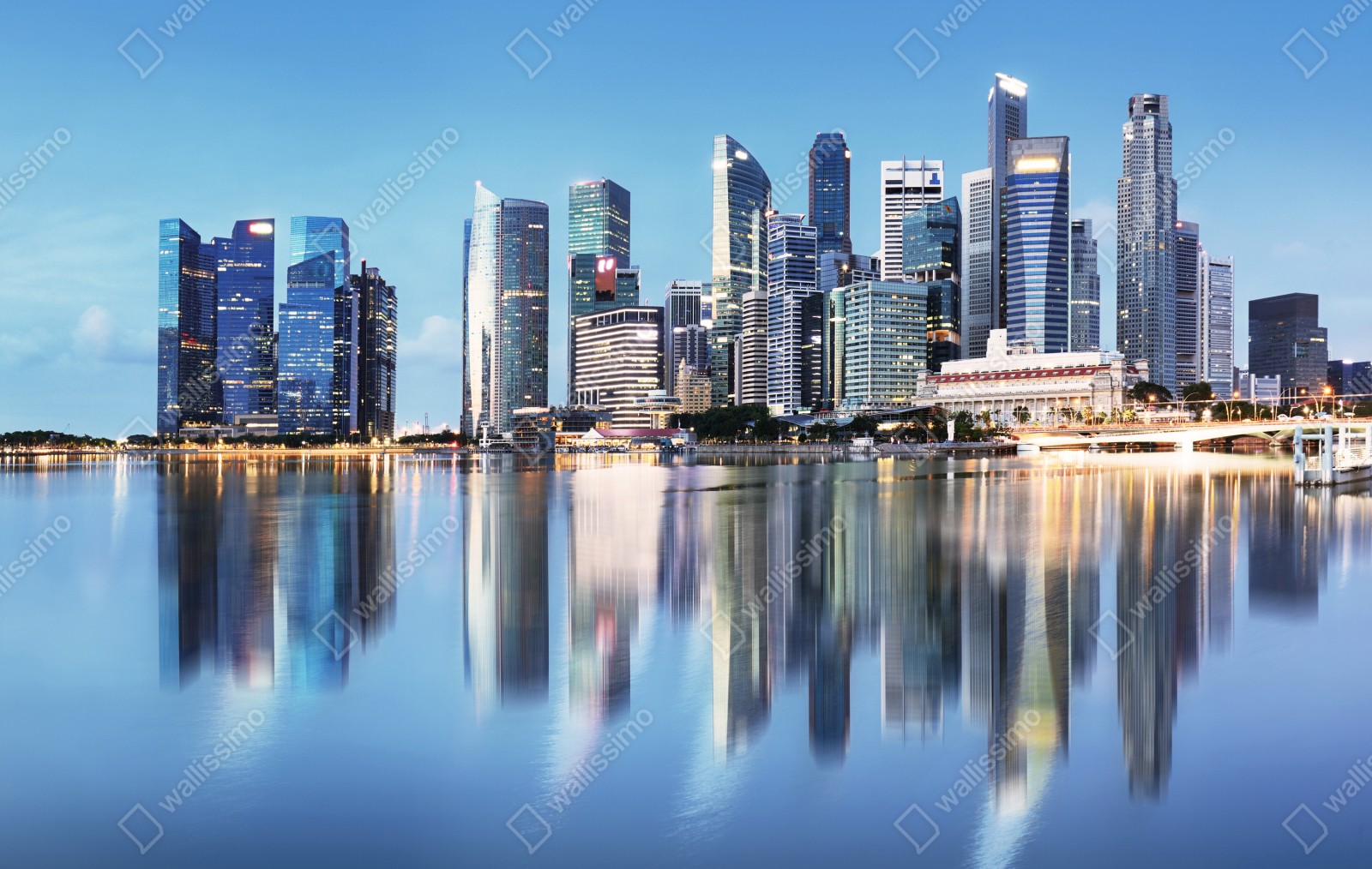 Naklejka repozycjonowalna Nowoczesna panorama miasta odbita w wodzie