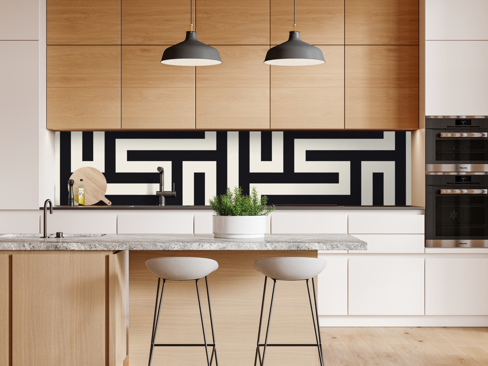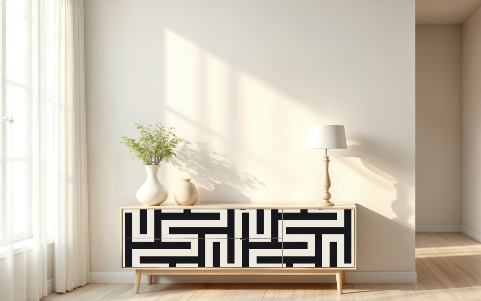 Naklejka repozycjonowalna Geometryczny wzór labiryntu w beżu i czerni