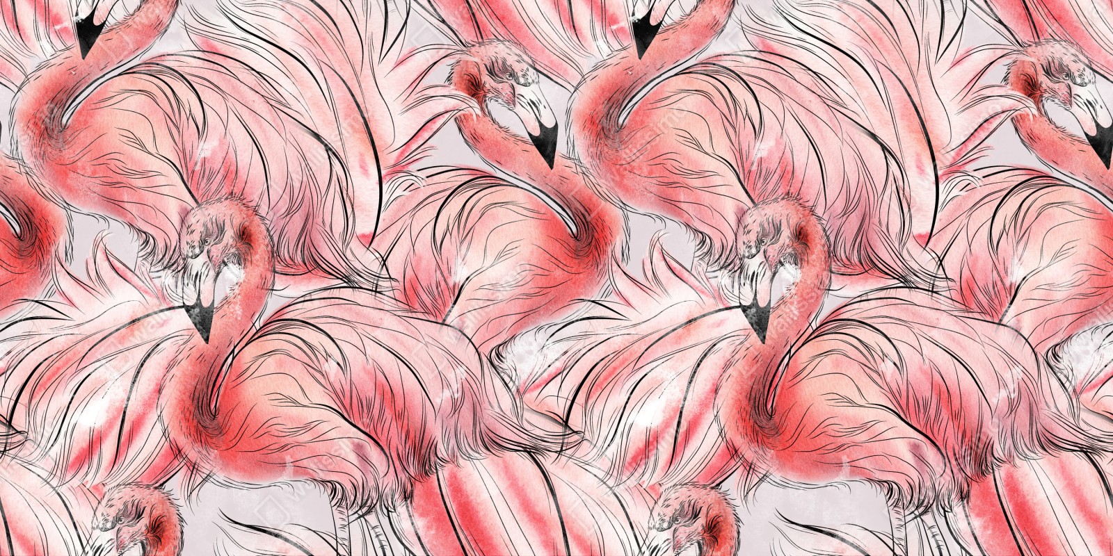 Naklejka repozycjonowalna Akwarelowy wzór z flamingami