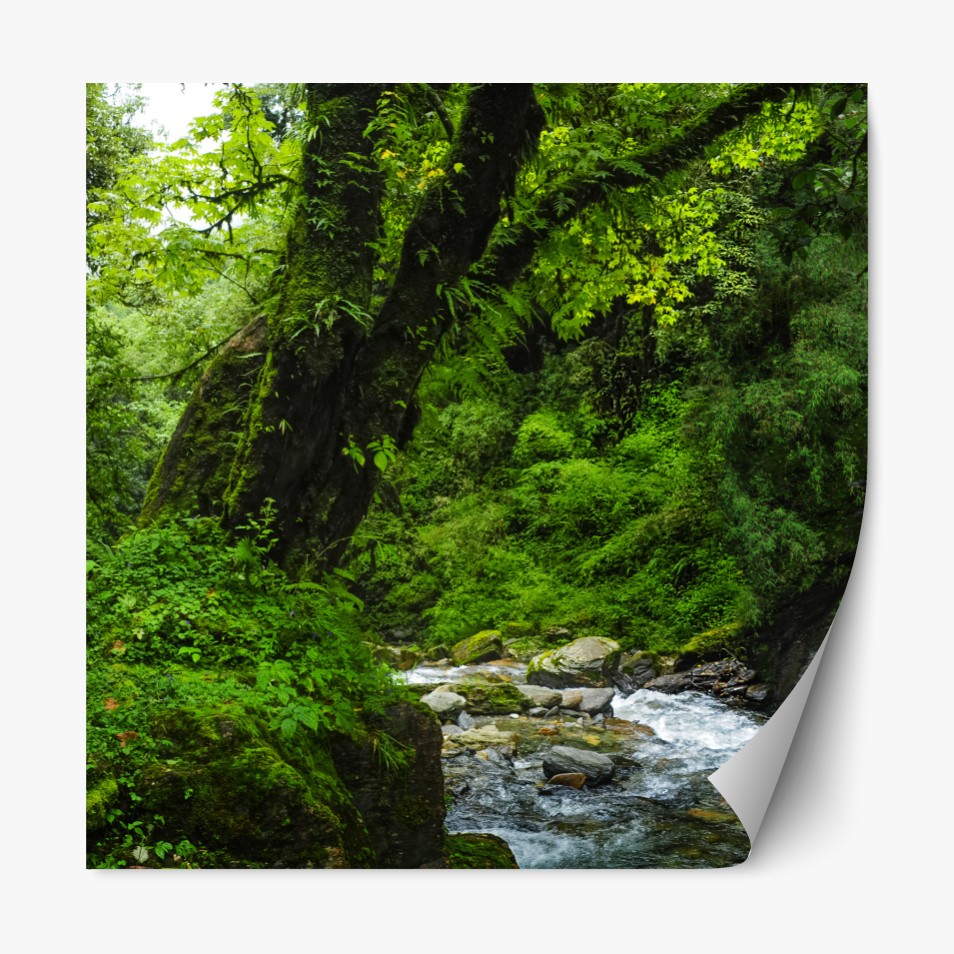 Naklejka repozycjonowalna Bujny zielony wodospad w lesie