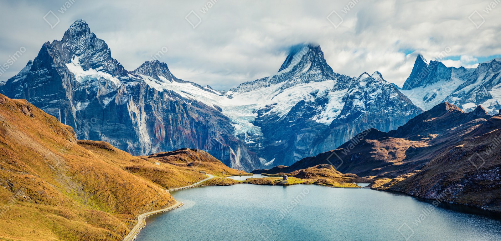 Naklejka repozycjonowalna Poranek nad jeziorem Bachalp, Alpy Szwajcarskie
