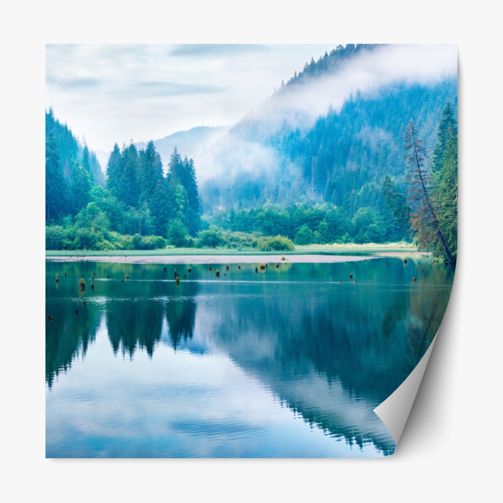 Naklejka repozycjonowalna Mglisty poranek nad jeziorem Lacu Rosu, Rumunia