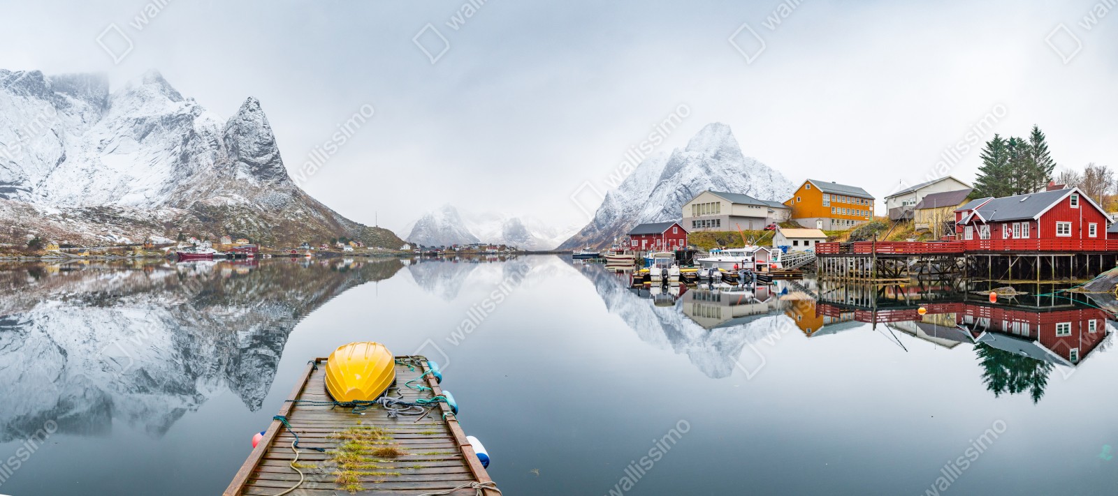 Naklejka repozycjonowalna Spokojna panorama górskiego fiordu